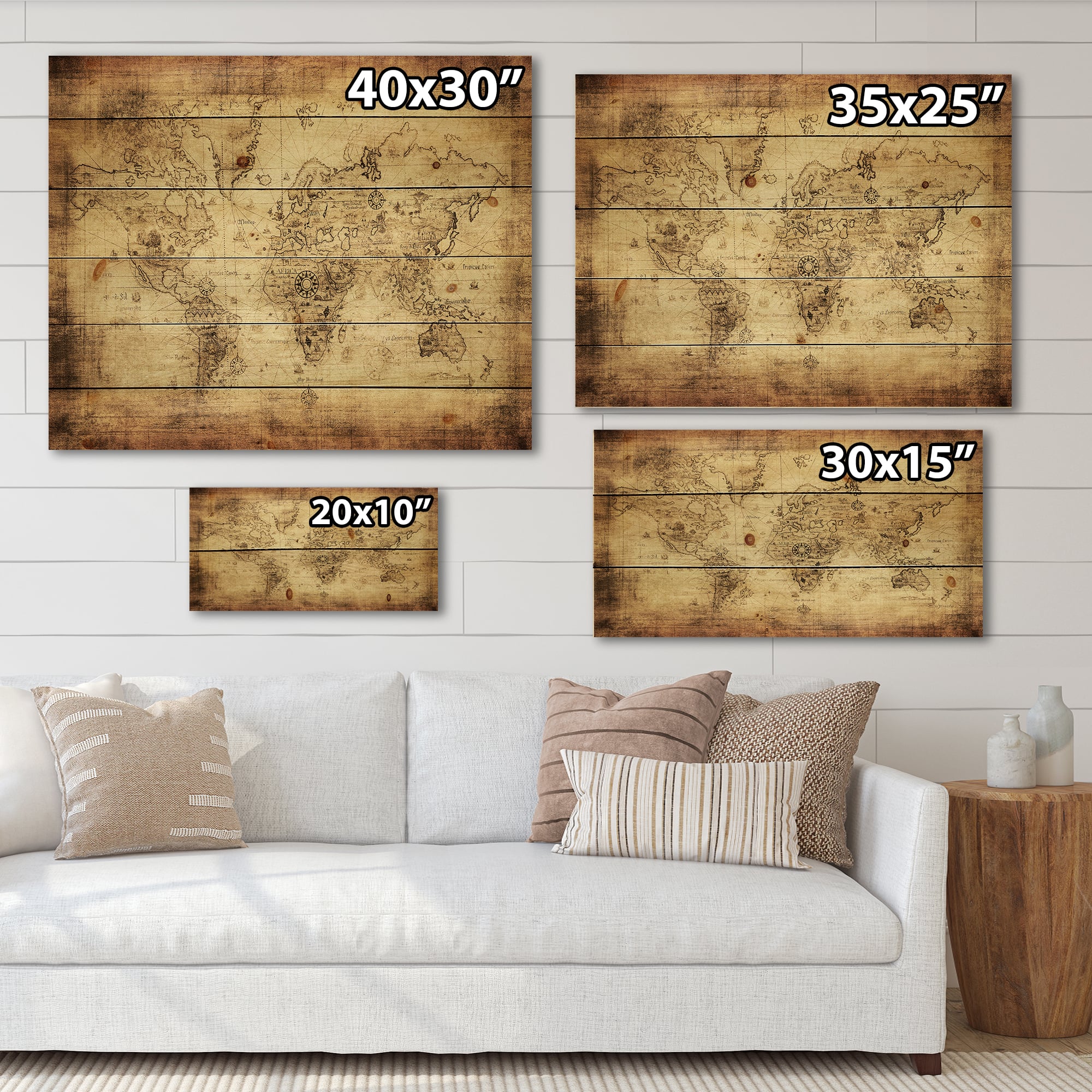 Designart - Ancient Map of The World IV - Vintage Print on Natural Pine Wood