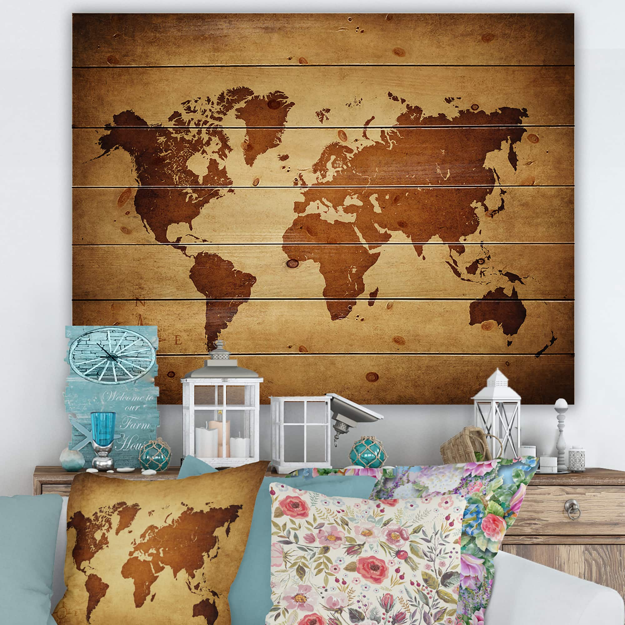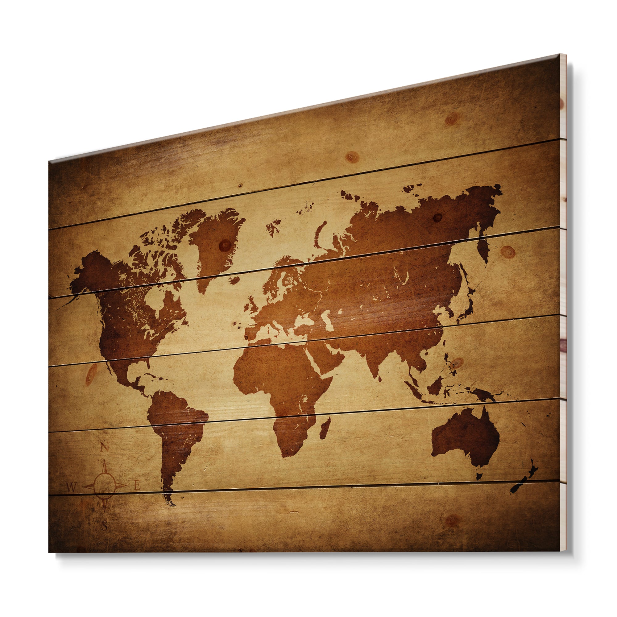 Designart - Ancient Map of The World VI - Vintage Print on Natural Pine Wood