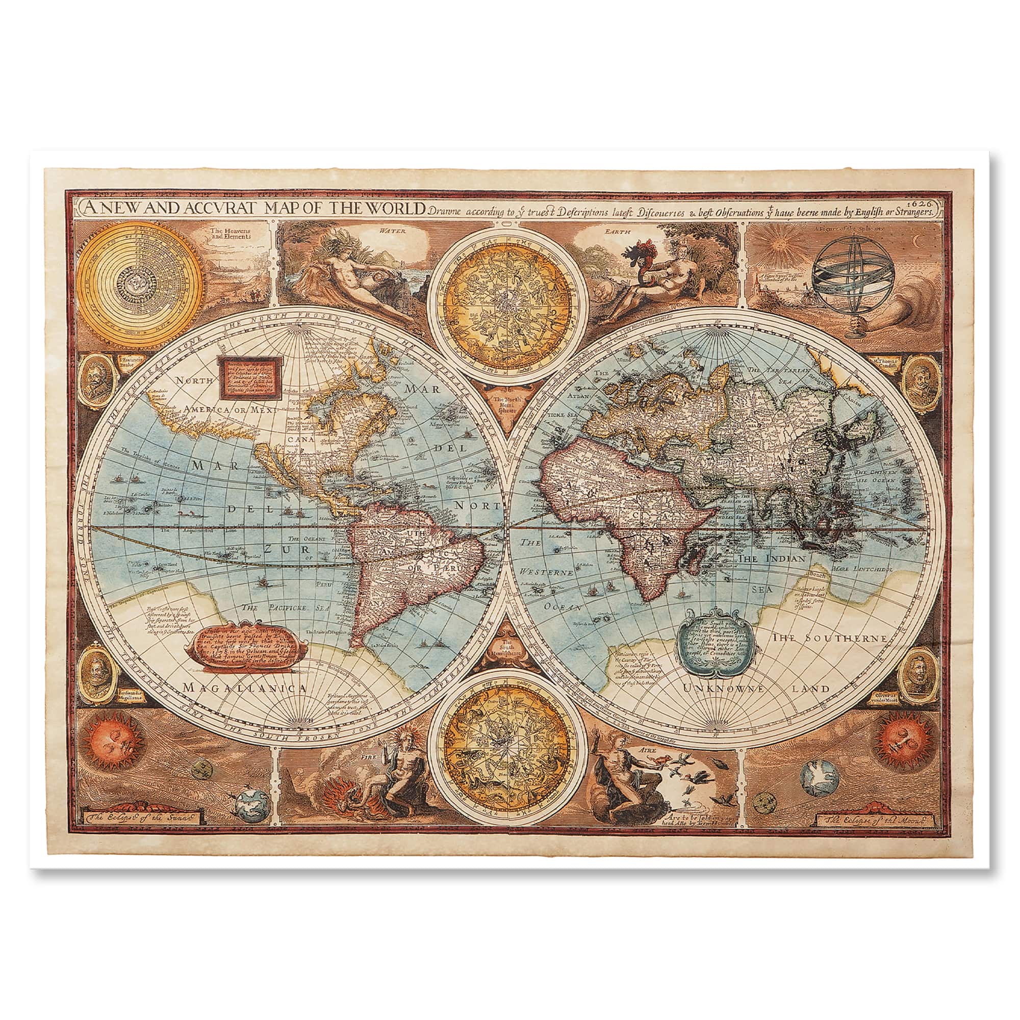 Designart - Ancient Map of The World VIII - Vintage Canvas Wall Art Print