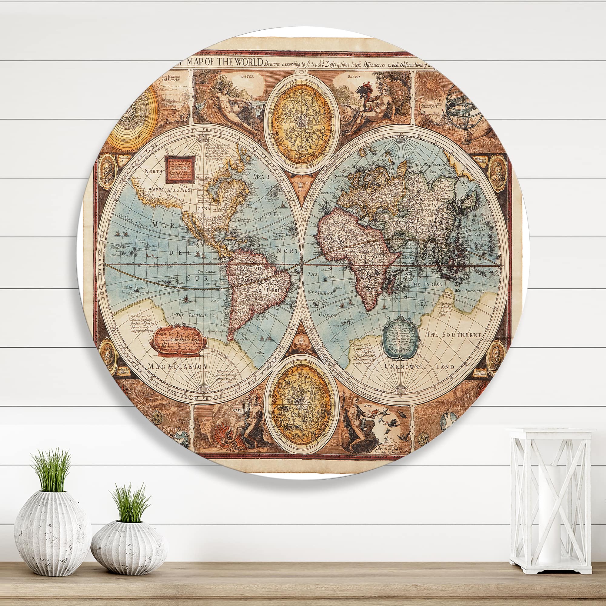 Designart - Ancient Map of The World VIII - Vintage Metal Circle Wall Art