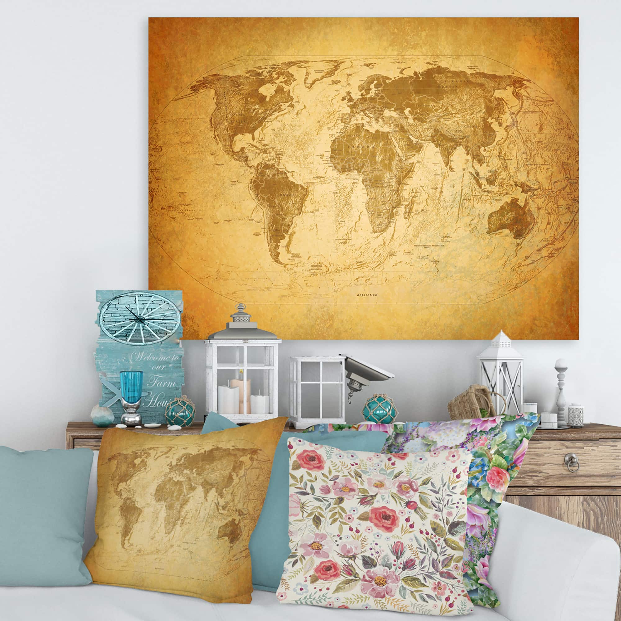Designart - Ancient Map of The World X - Vintage Canvas Wall Art Print