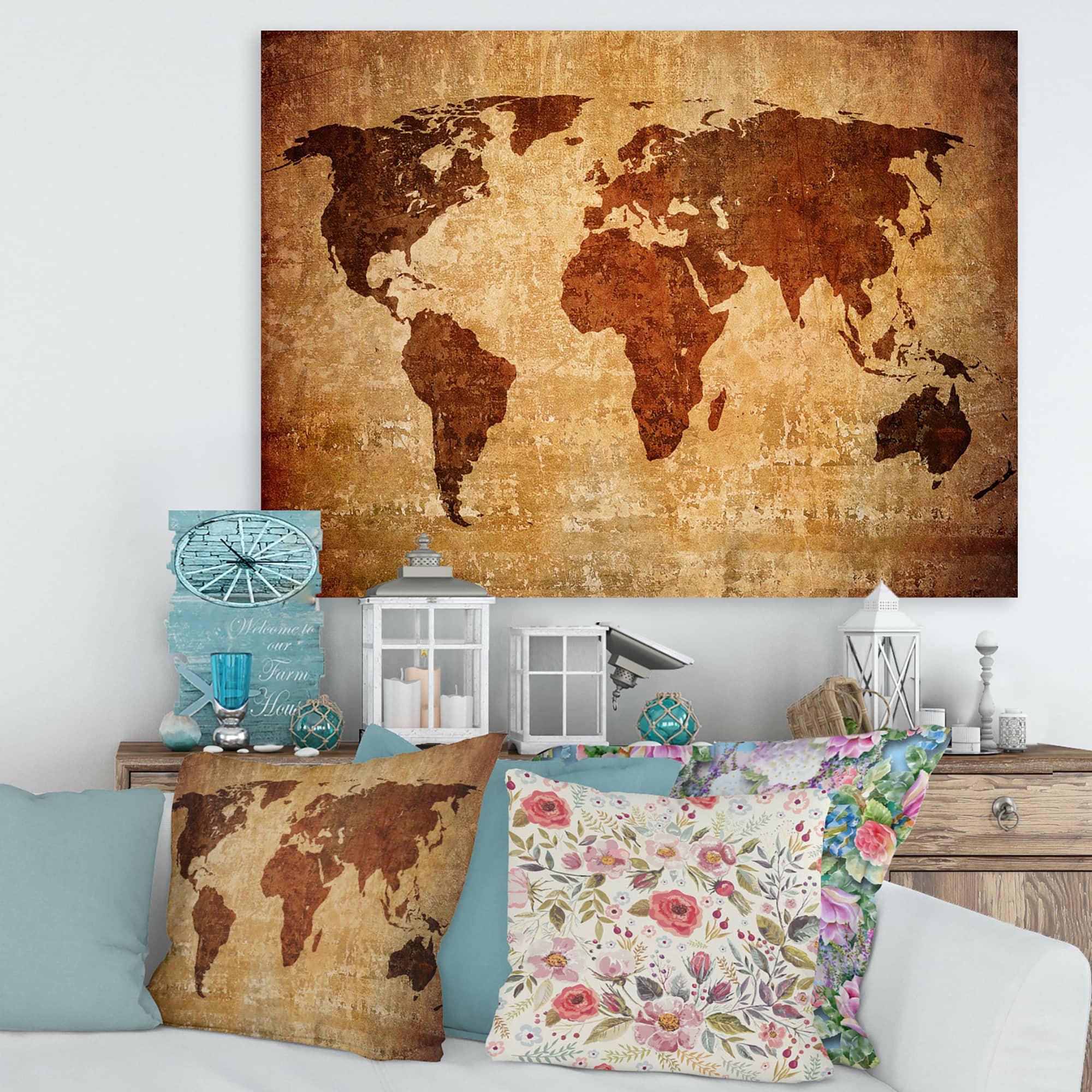 Designart - Ancient Map of The World XI - Vintage Canvas Wall Art Print