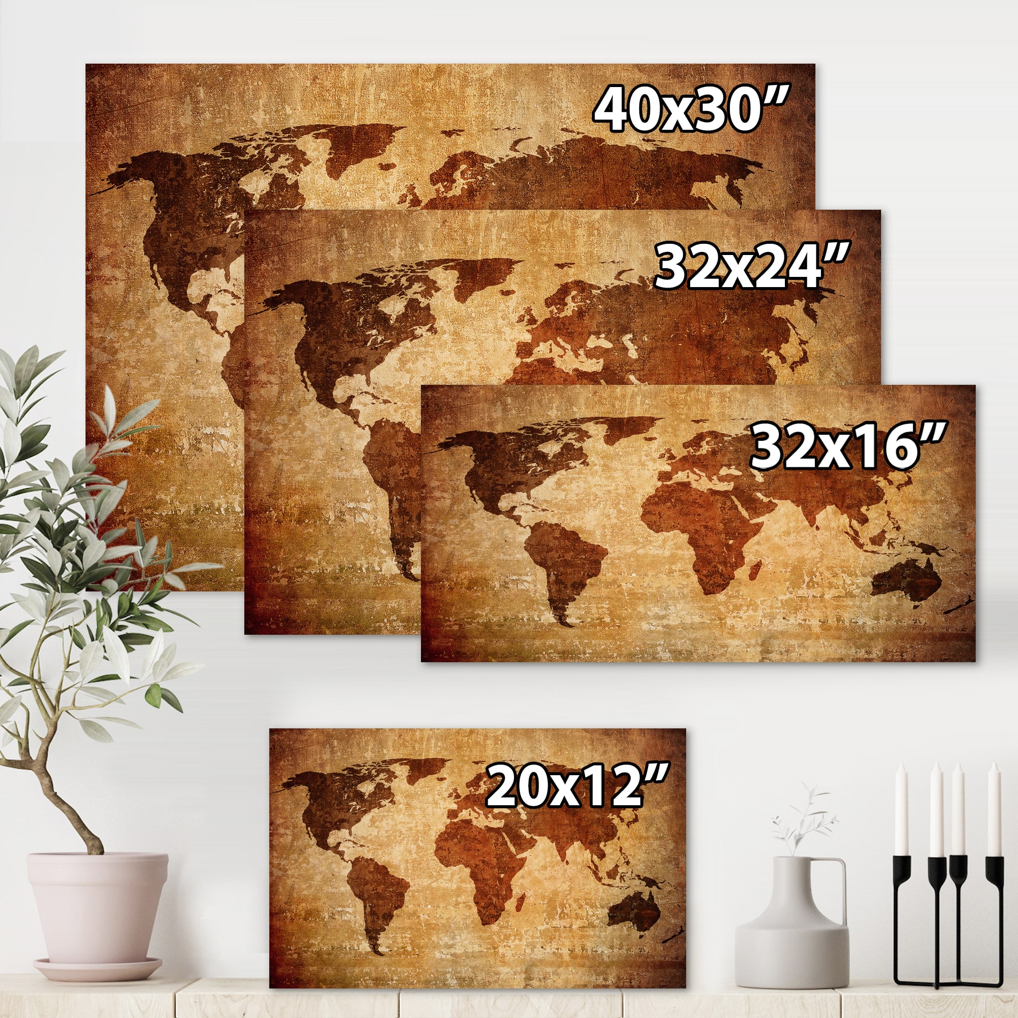 Designart - Ancient Map of The World XI - Vintage Canvas Wall Art Print