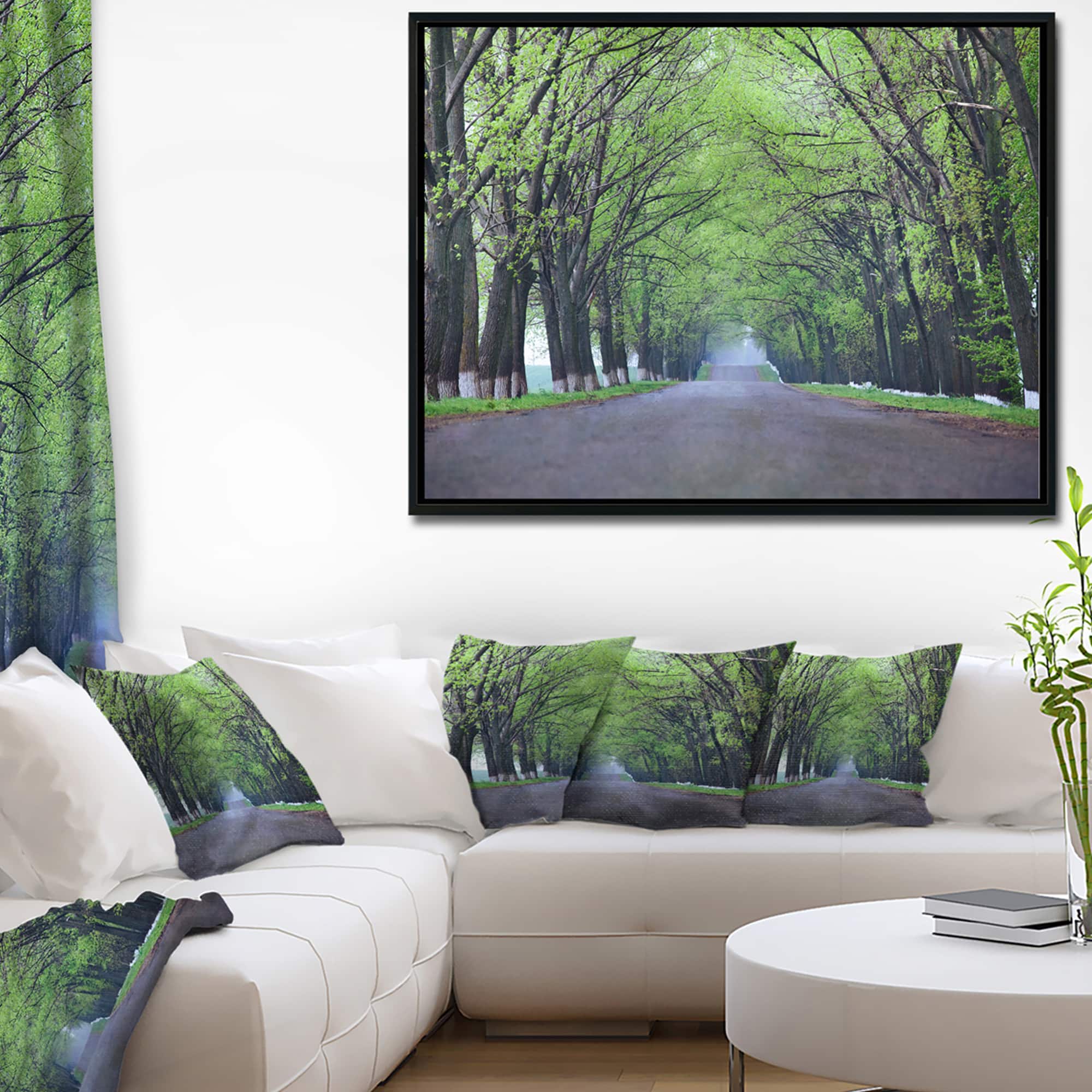 Designart - Arched Trees Over Country Road - Landscape Photography Canvas Print in Black Frame