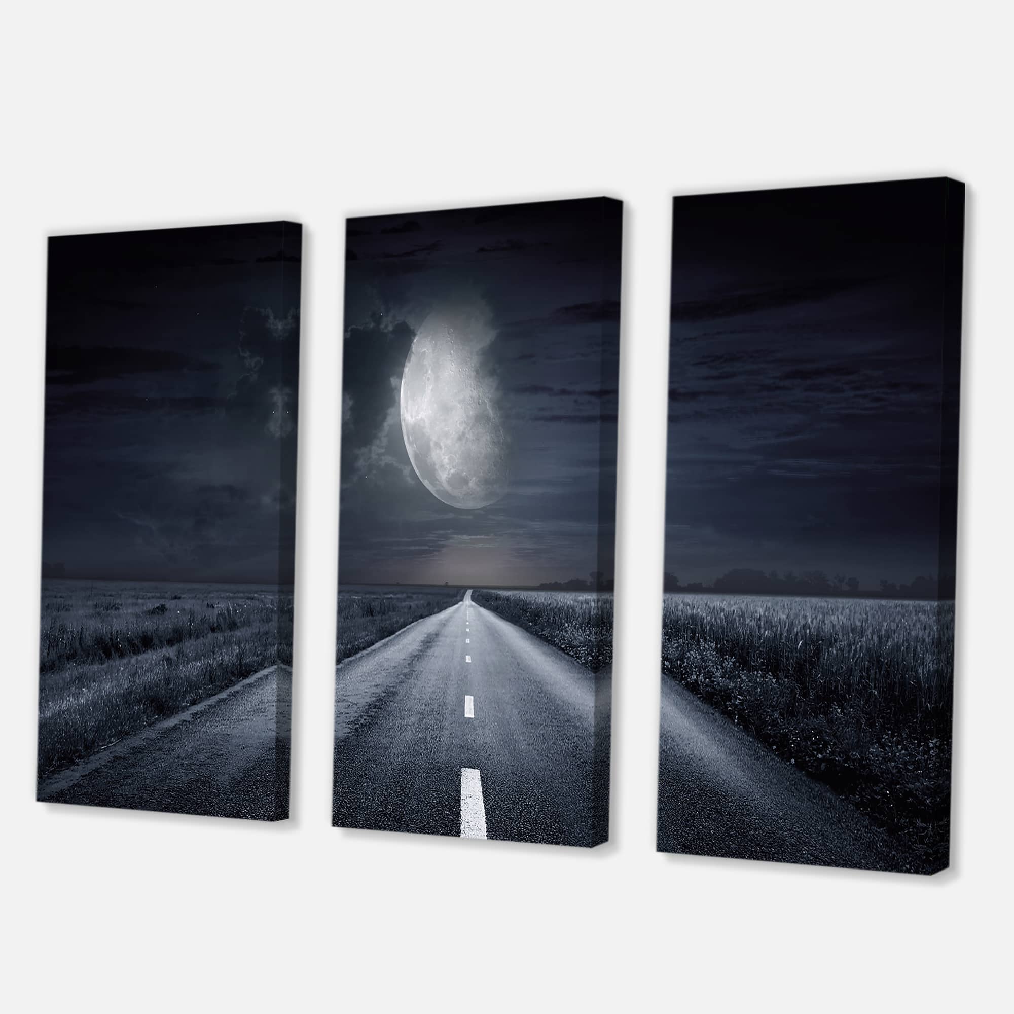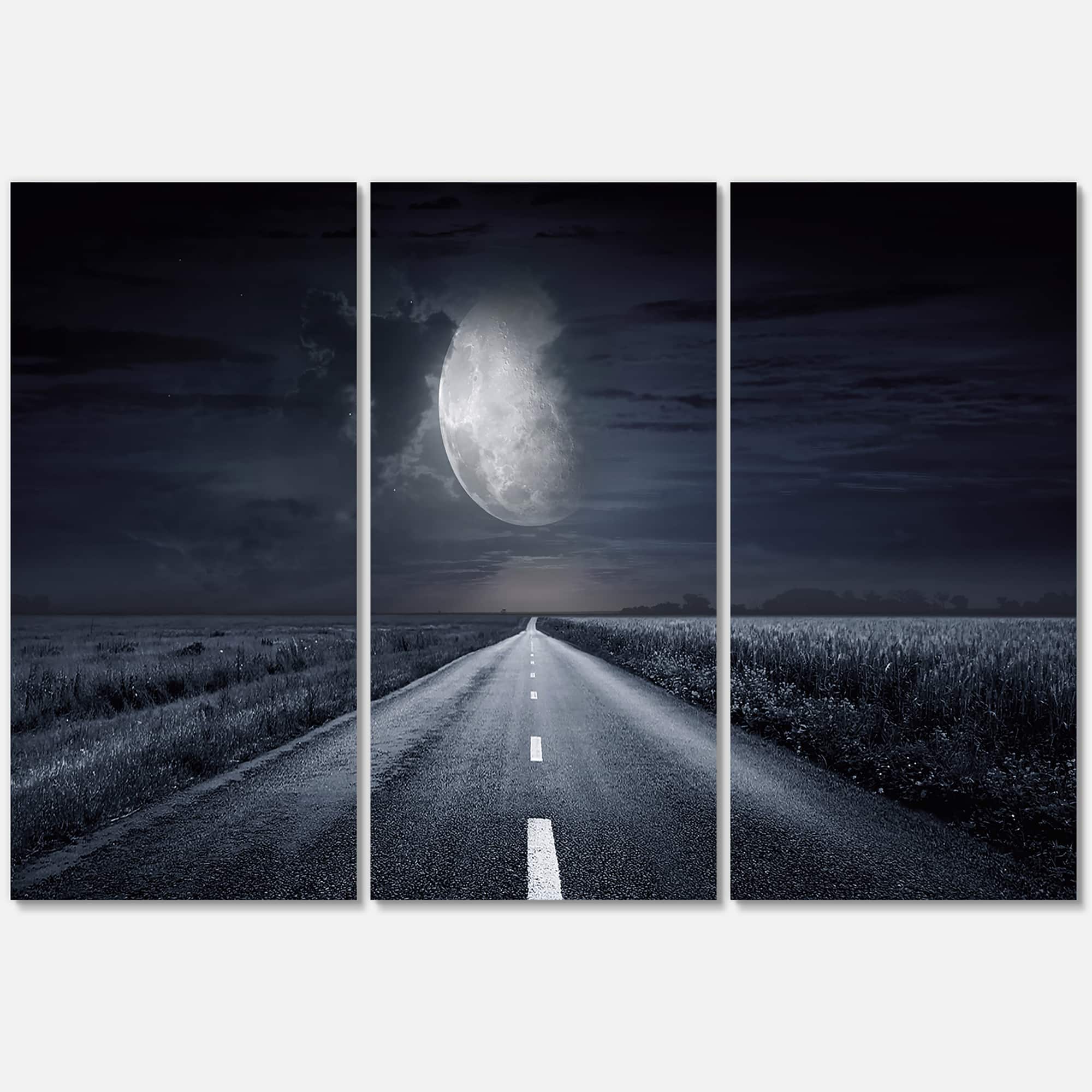 Designart - Asphalt Road Under Cloudy Full Moon III - Nautical & Coastal Canvas Wall Art Print