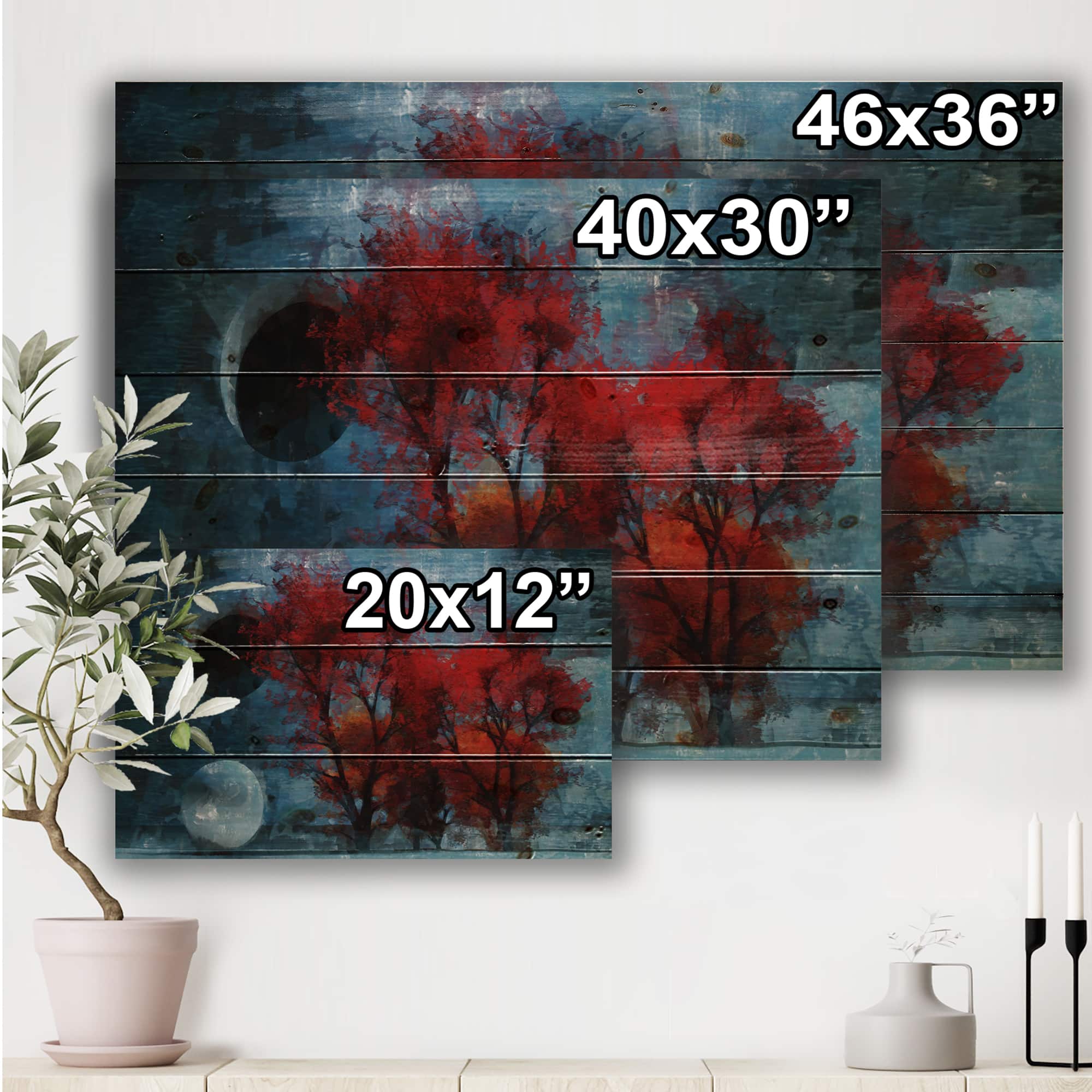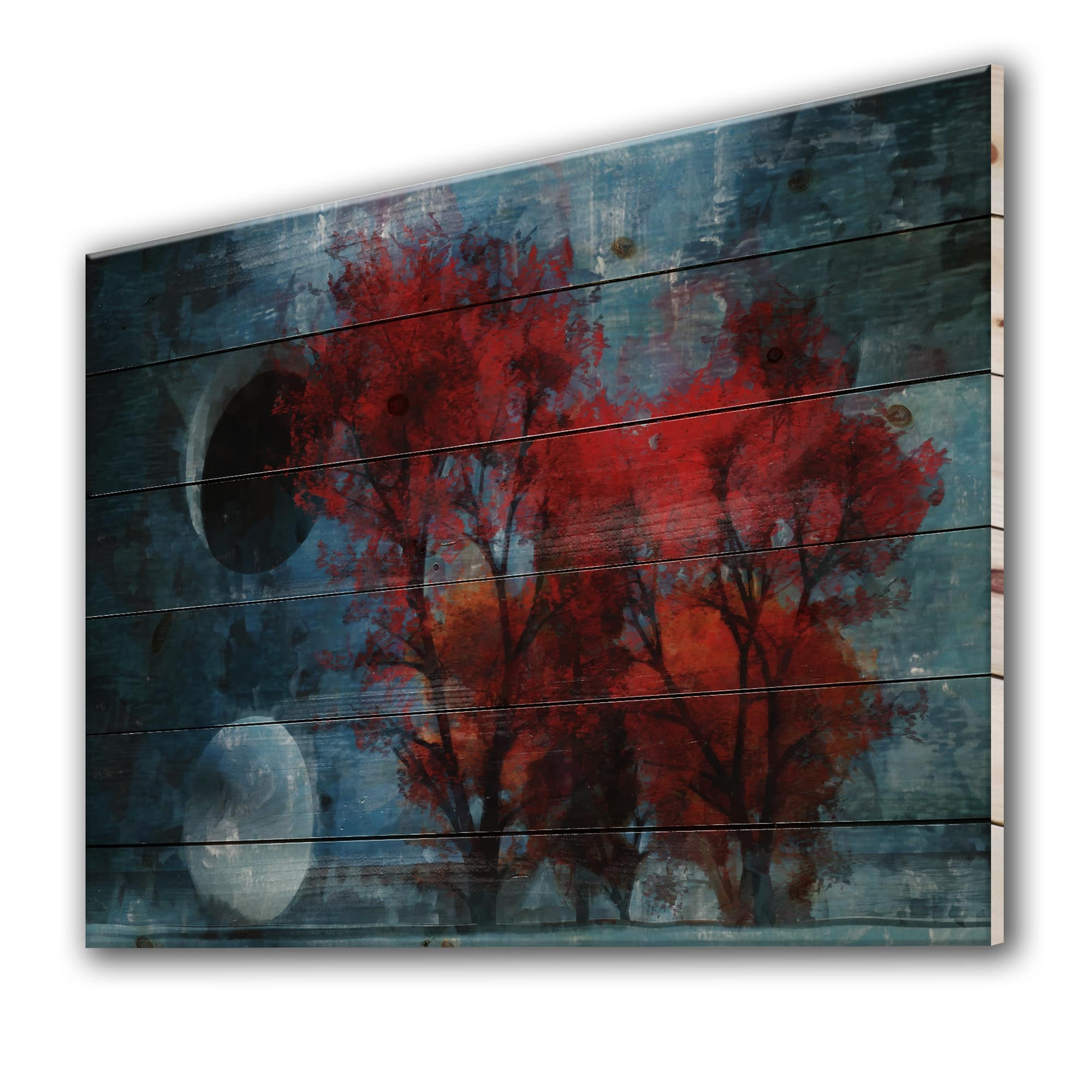 Designart - Autumn Colored Forest Treescape XXV - Farmhouse Print on Natural Pine Wood