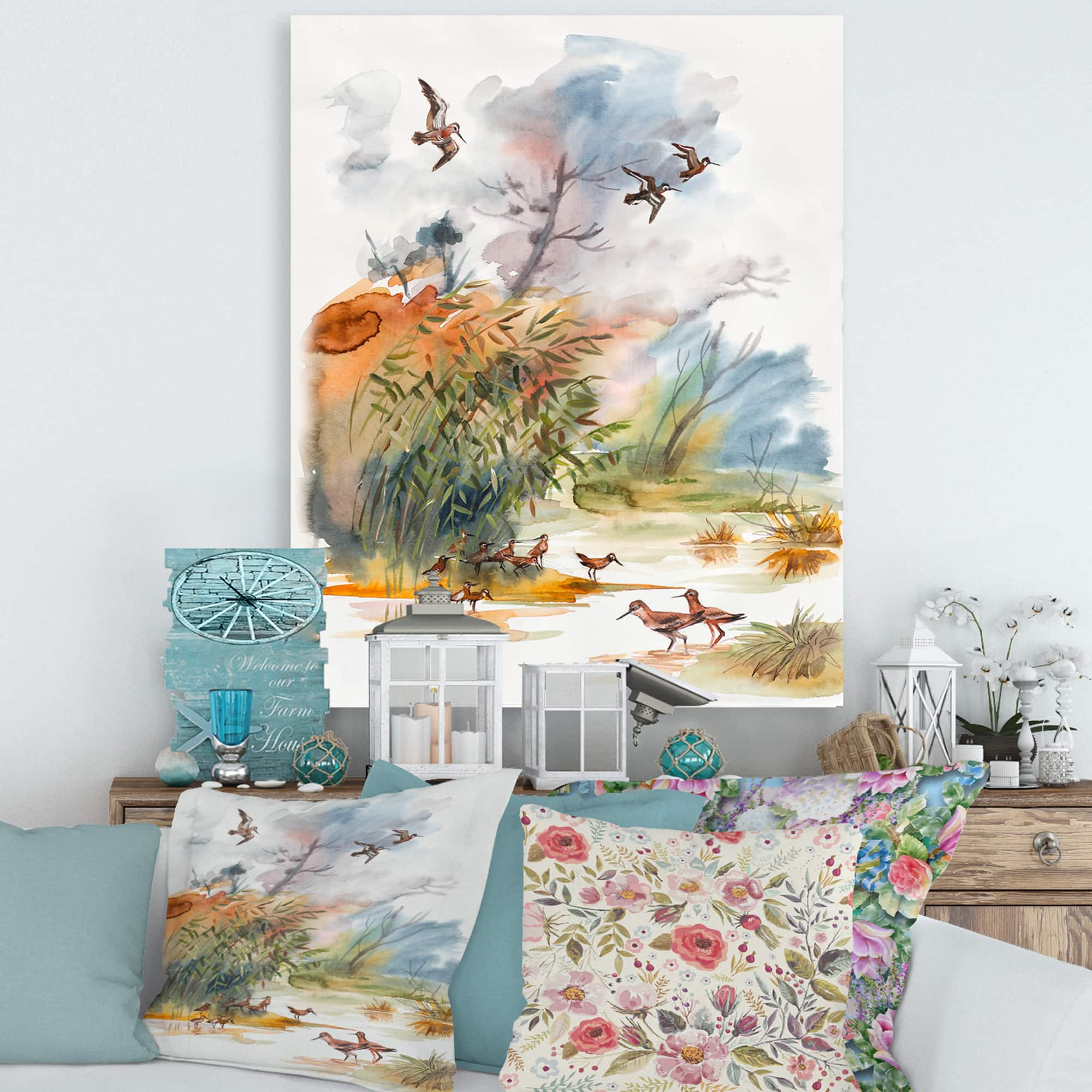 Designart - Autumn Landscape With Flying Over The Water - Traditional Canvas Wall Art Print