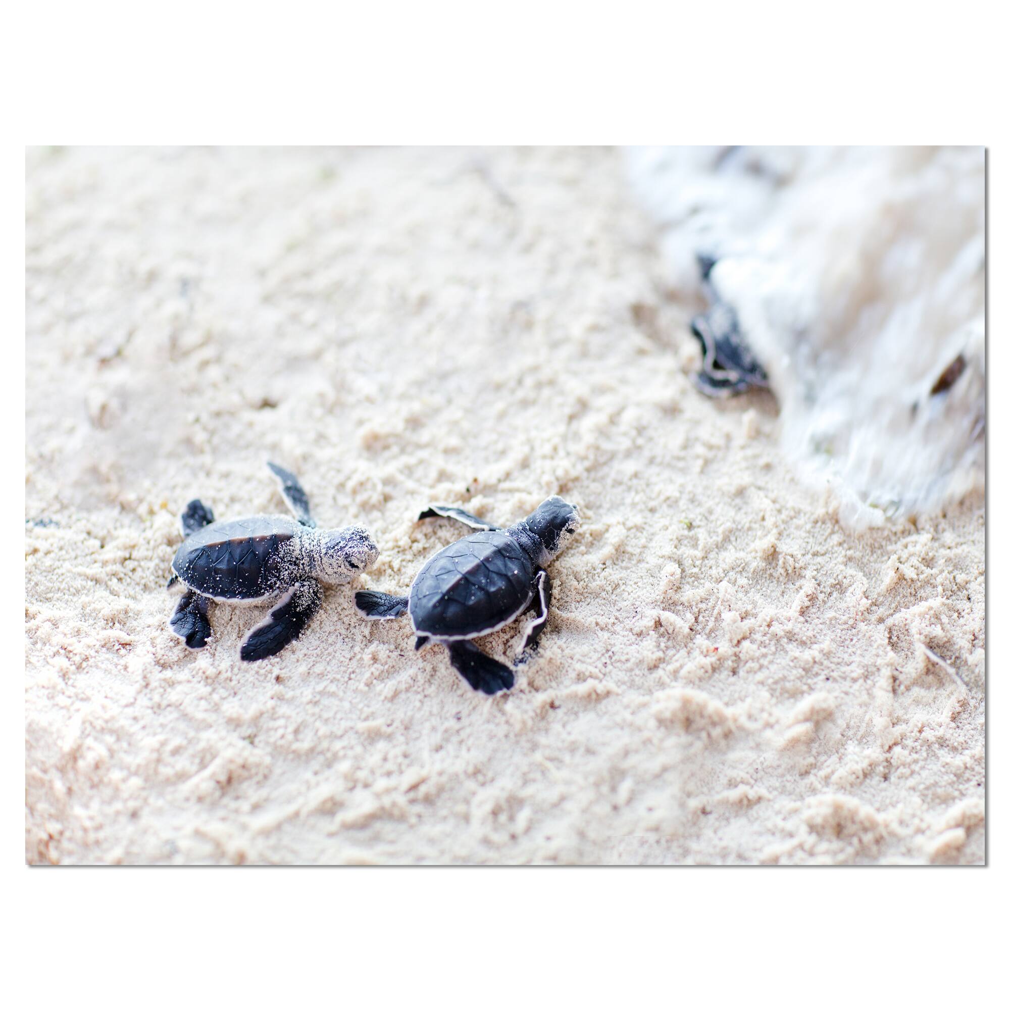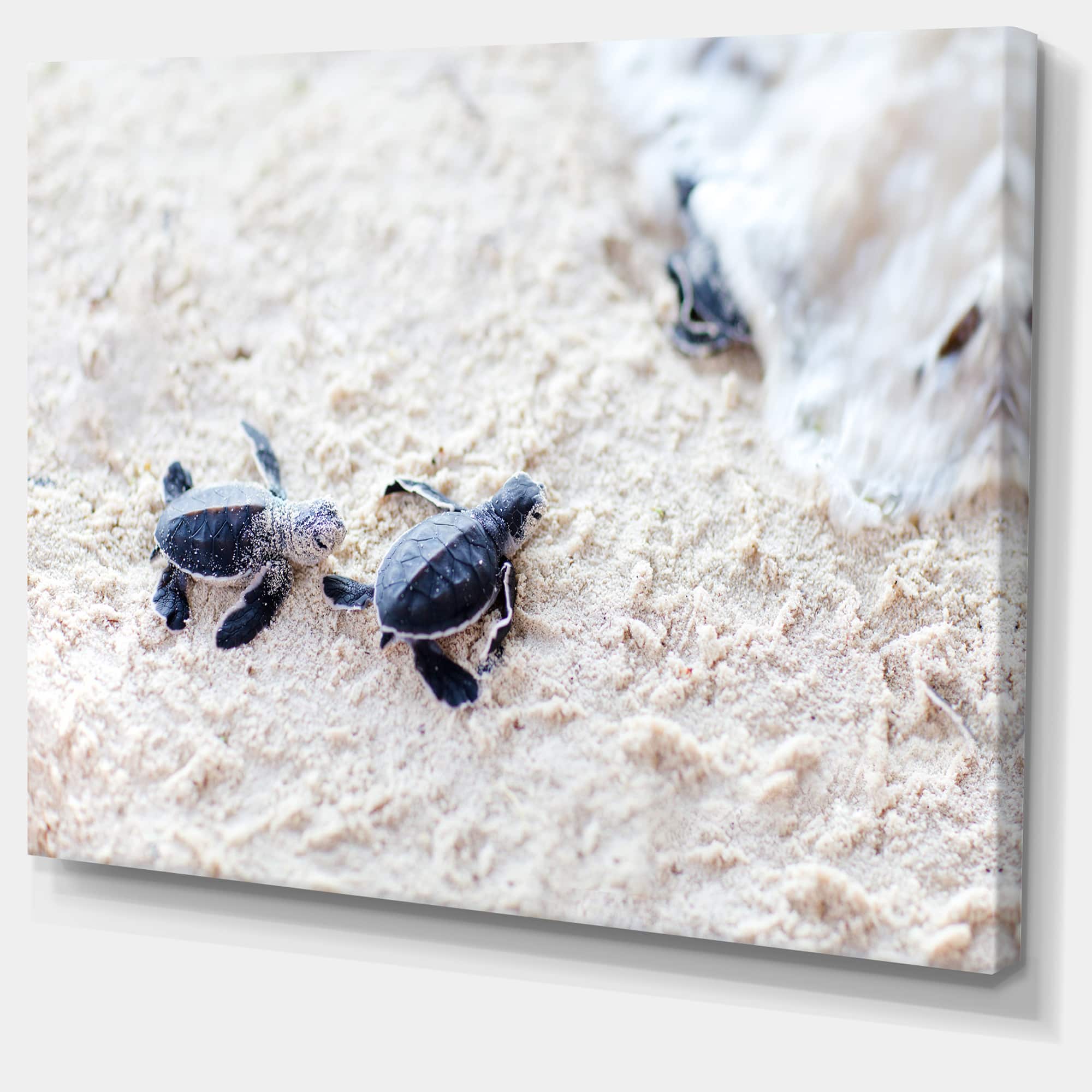 Designart - Baby Green Turtles on Sand - Oversized Animal Wall Art
