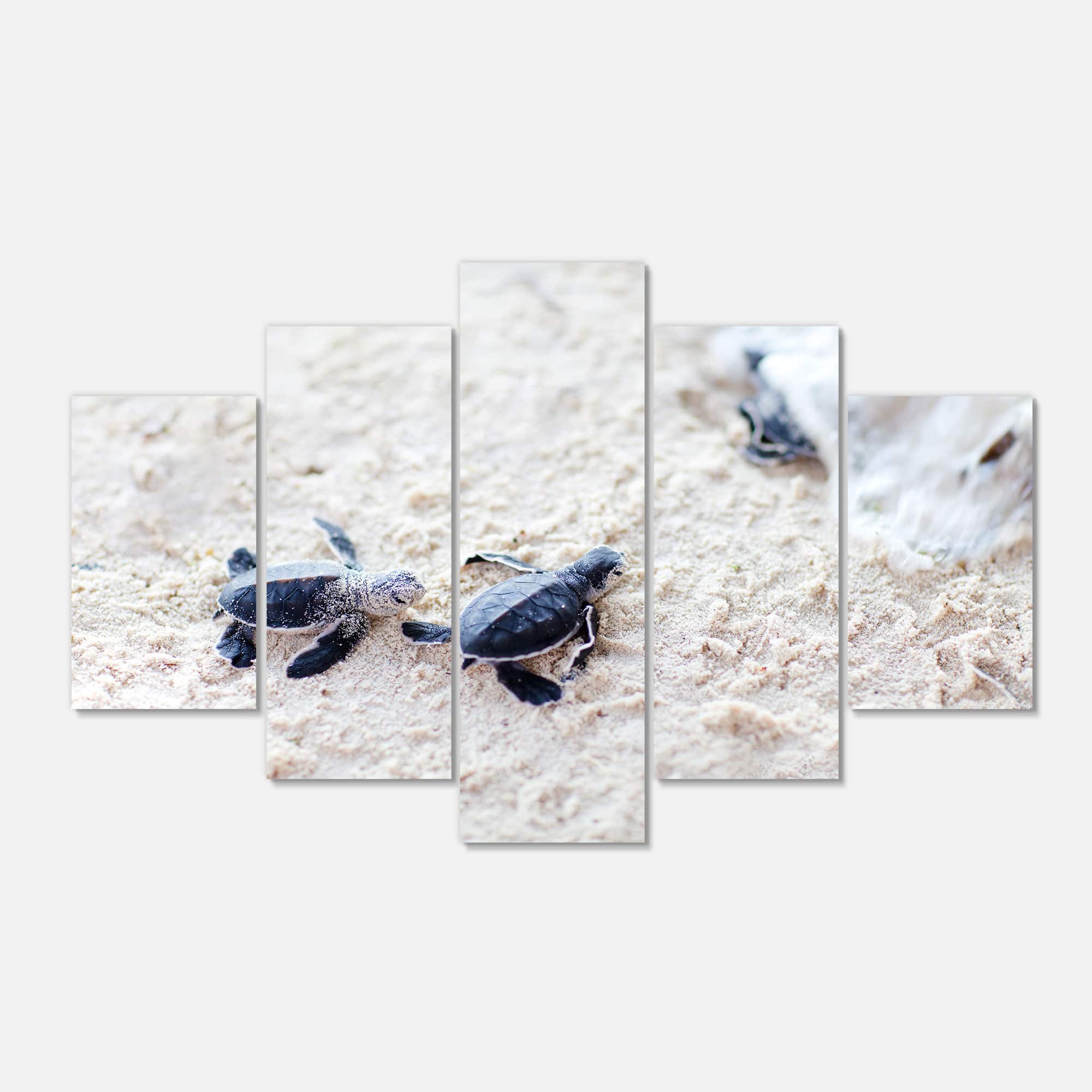 Designart - Baby Green Turtles on Sand - Oversized Animal Wall Art