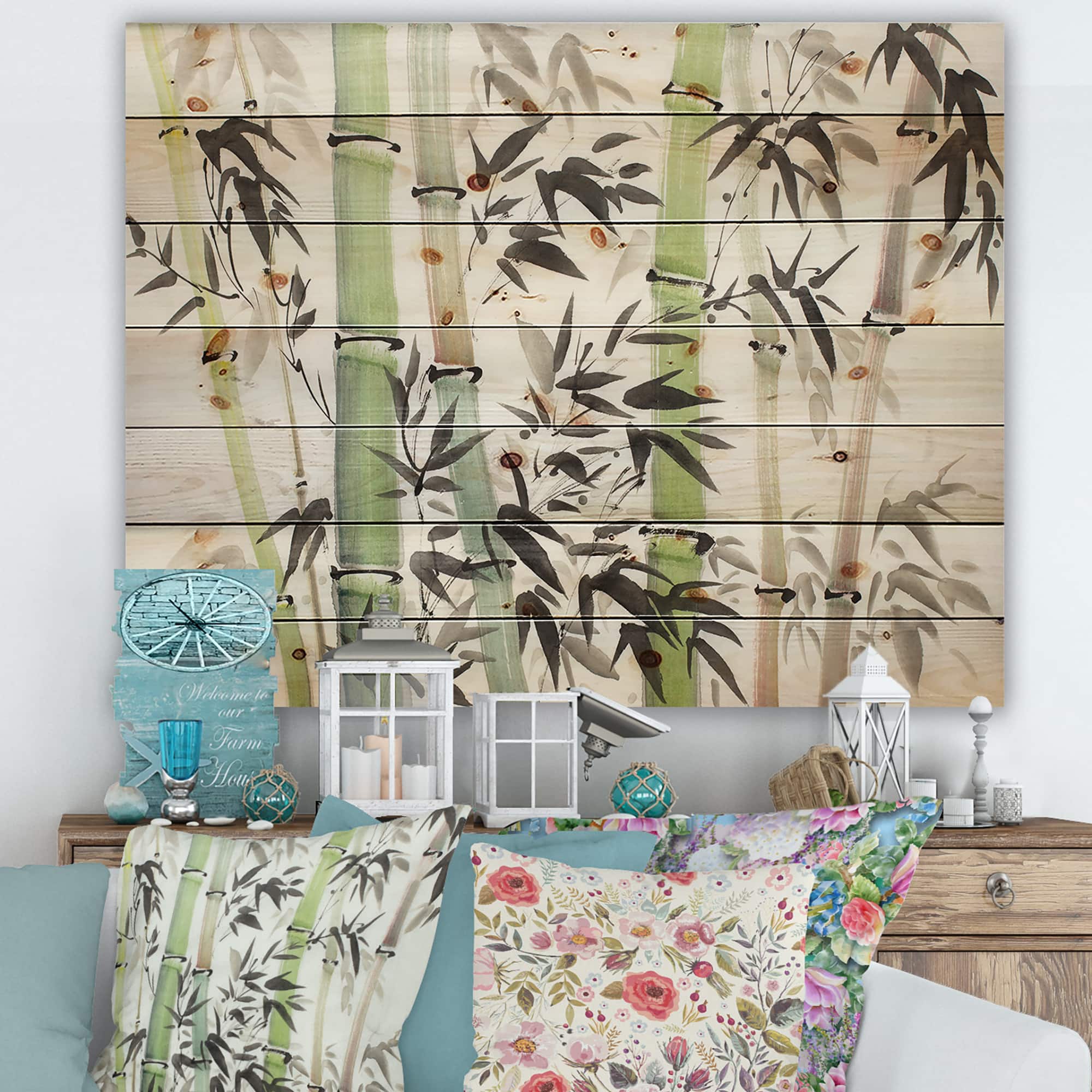 Designart - Bamboo Branches In The Forest II - Lake House Print on Natural Pine Wood