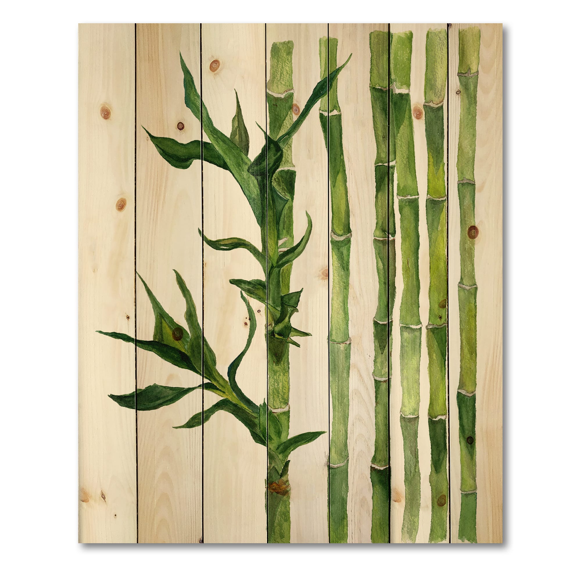 Designart - Bamboo Branches In The Forest III - Tropical Print on Natural Pine Wood