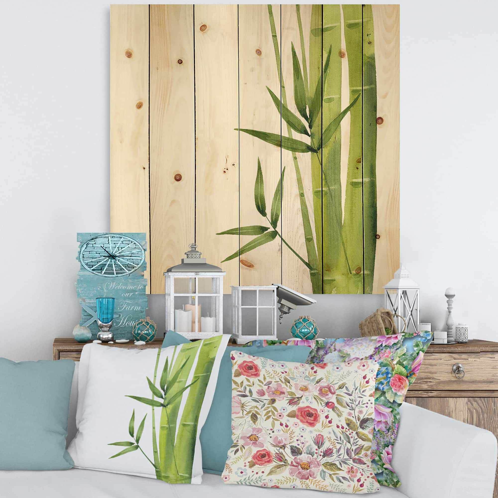 Designart - Bamboo Branches In The Forest V - Tropical Print on Natural Pine Wood