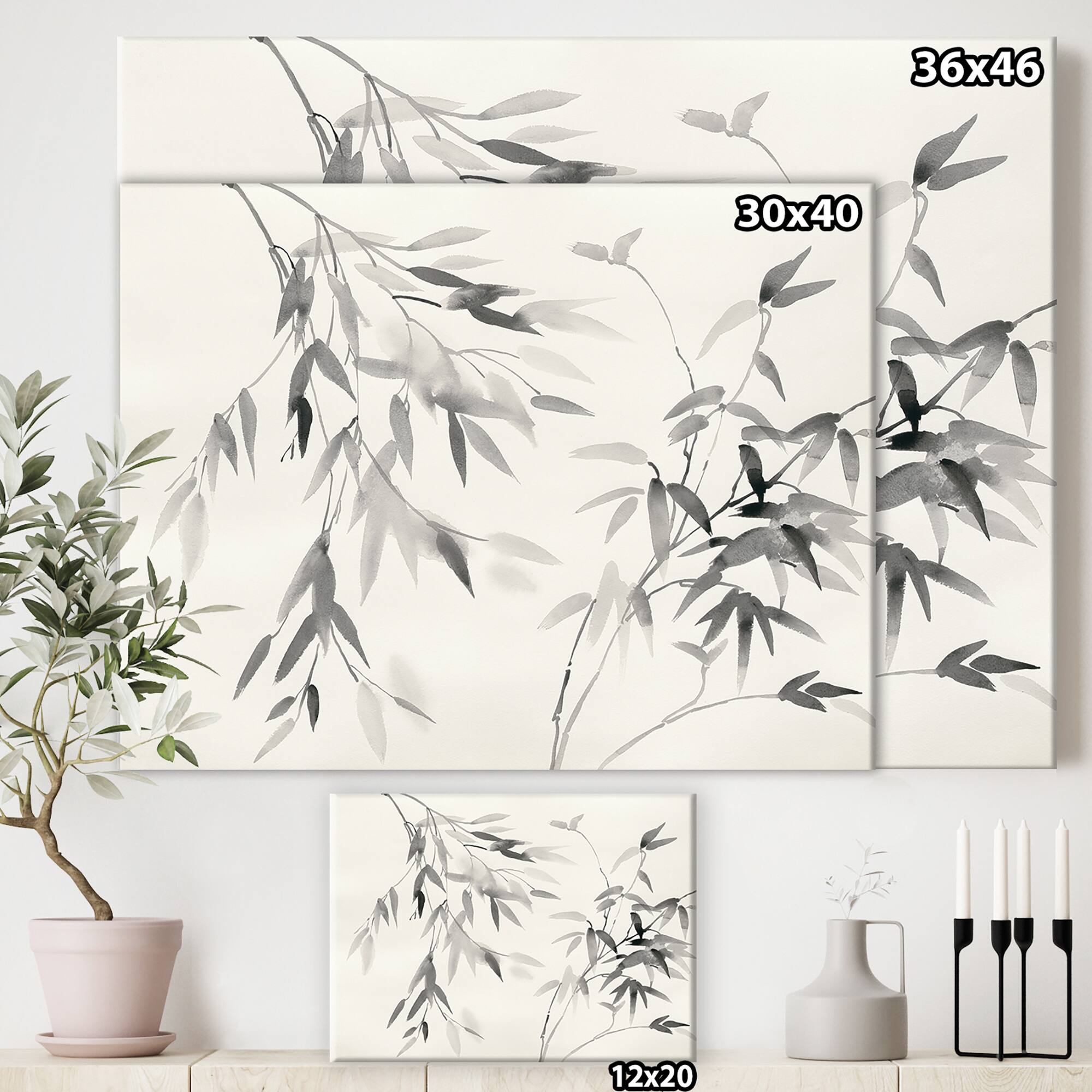 Designart - Bamboo Leaves II - Farmhouse Premium Canvas Wall Art