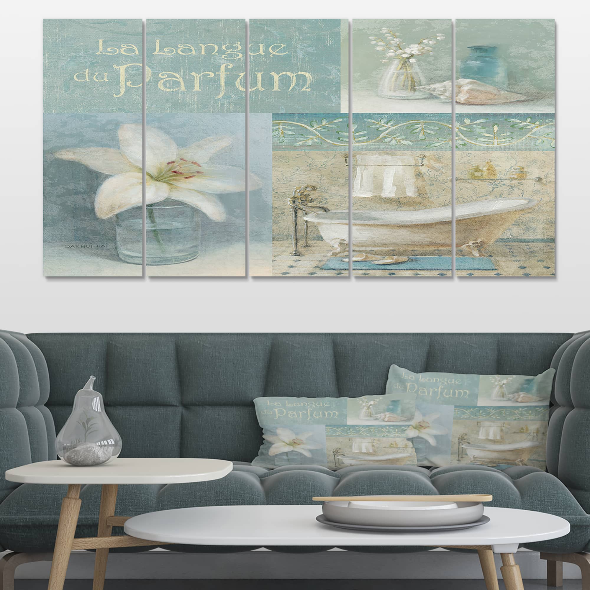 Designart - Bathroom Lily Parfum Bath Story - Traditional Premium Canvas Wall Art