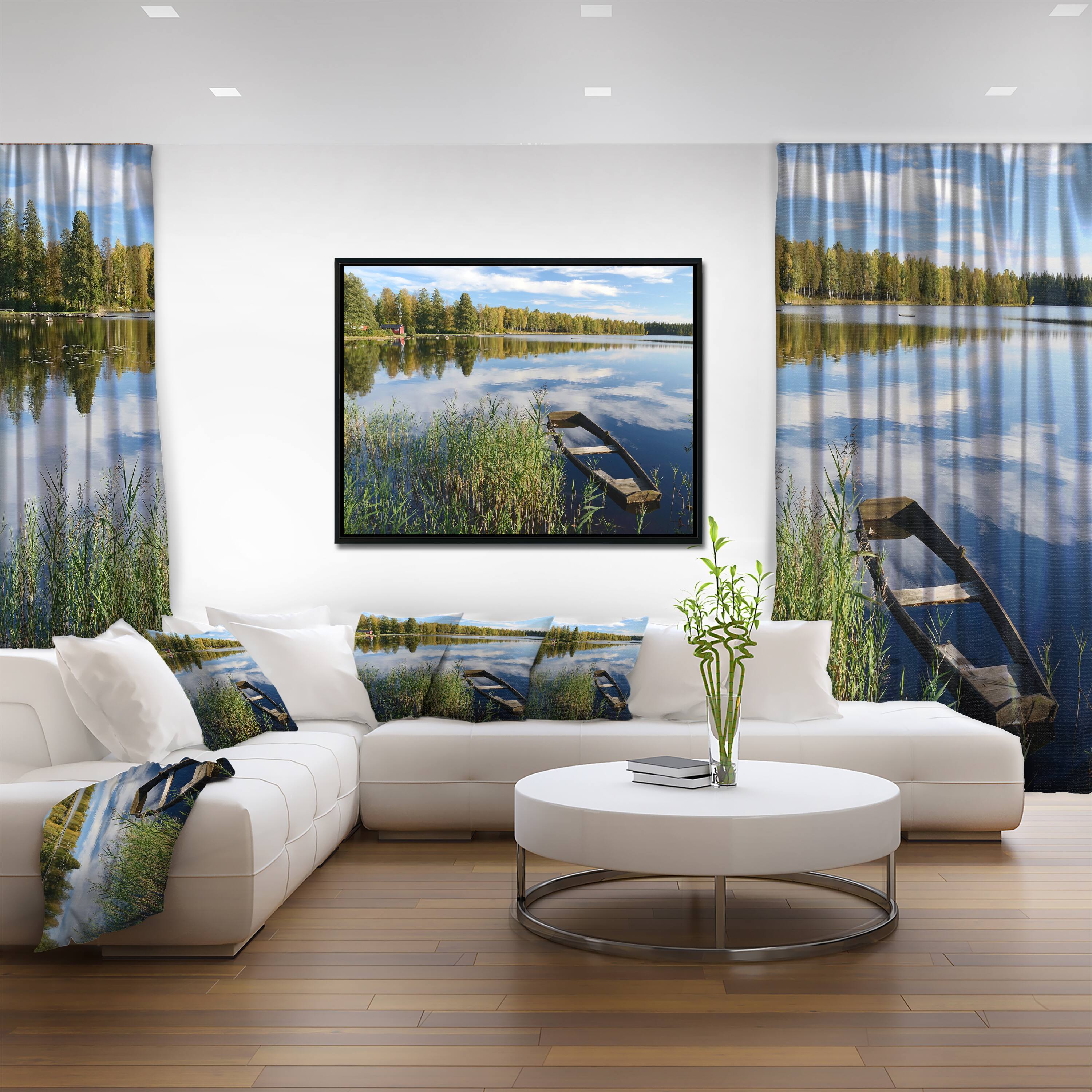 Designart - Beautiful Swedish September Lake - Landscape Photography Canvas Print in Black Frame