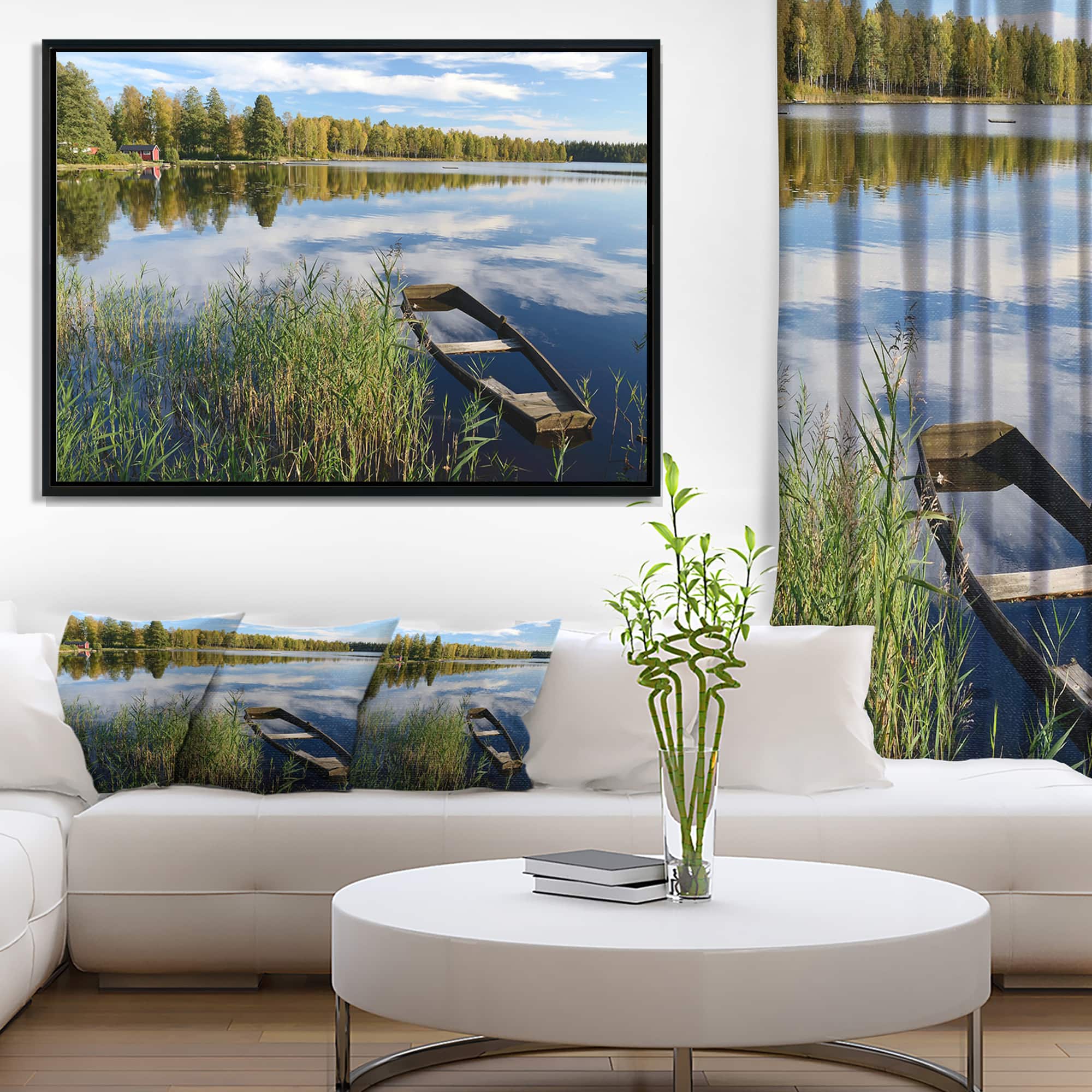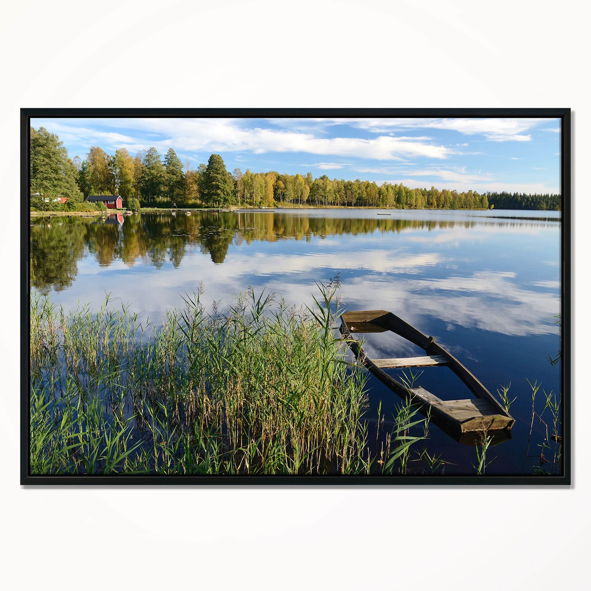 Designart - Beautiful Swedish September Lake - Landscape Photography Canvas Print in Black Frame