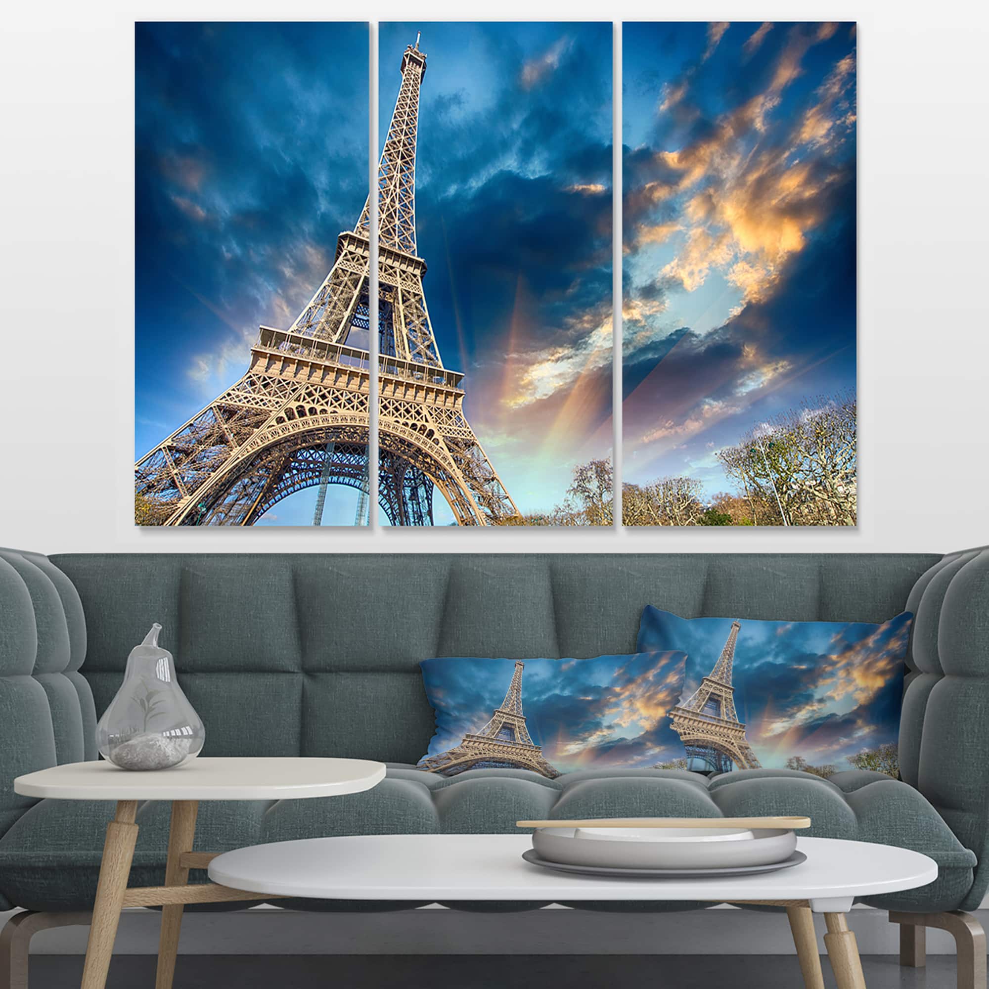Designart - Beautiful View of Paris Paris Eiffel Towerunder Fiery Sky - Cityscape Canvas Print
