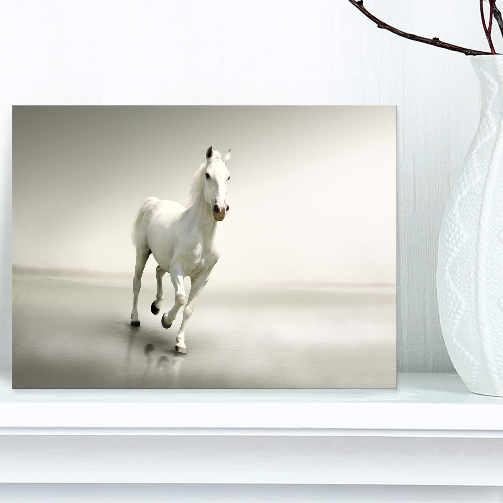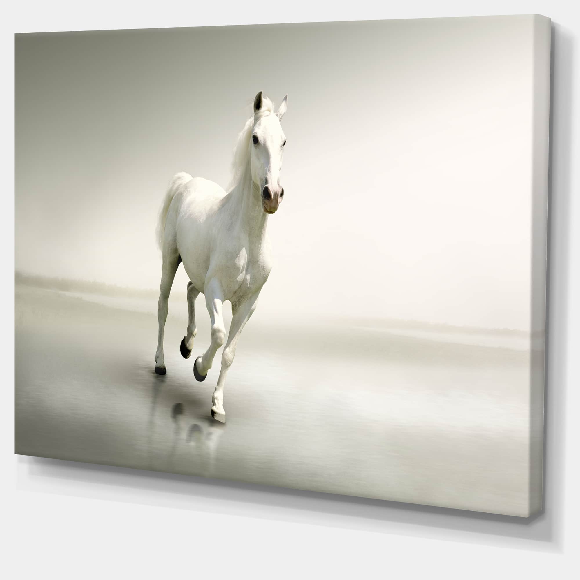 Designart - Beautiful White Horse Running - Animal Canvas Art Print