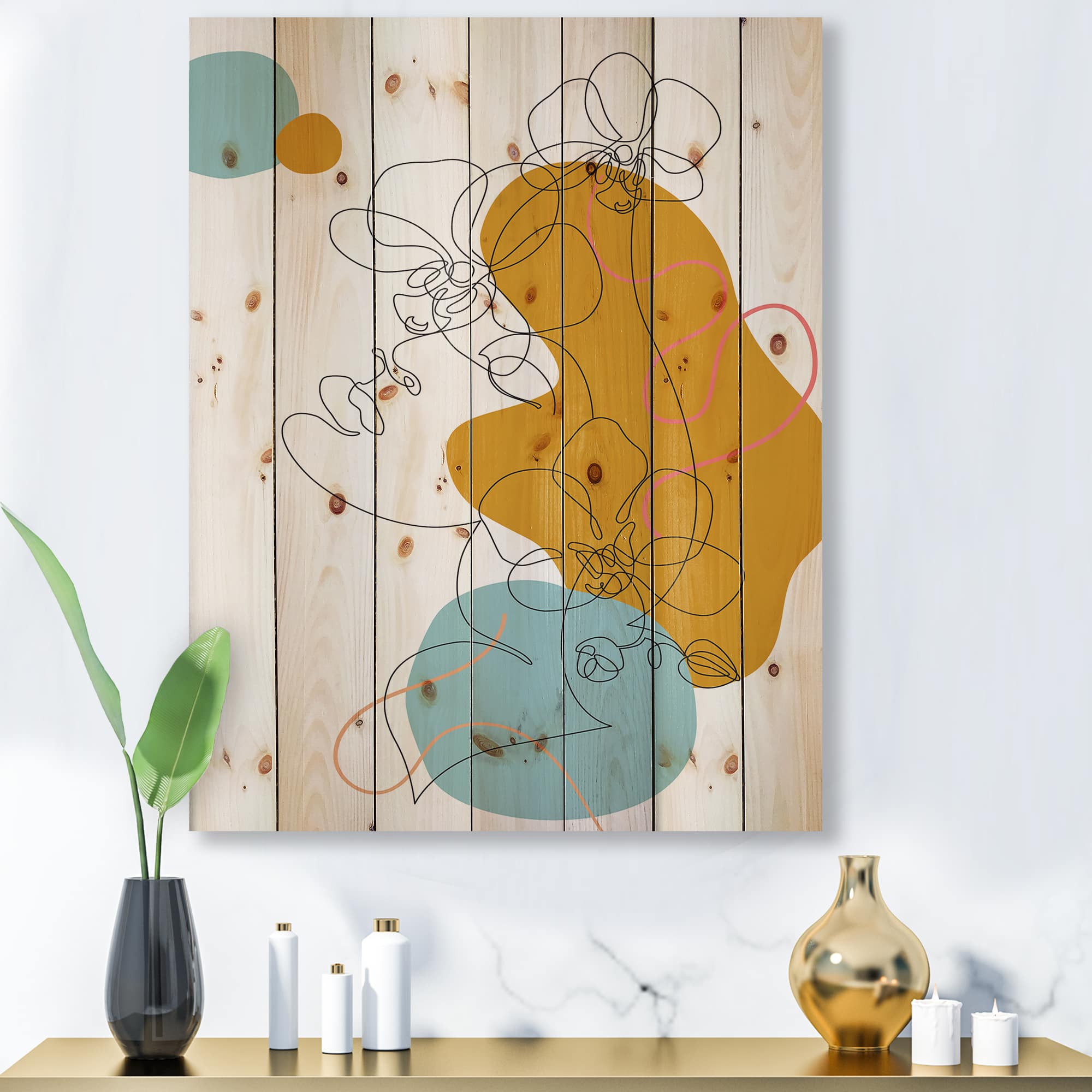 Designart - Beautiful Woman One Line Drawing - Modern Print on Natural Pine Wood