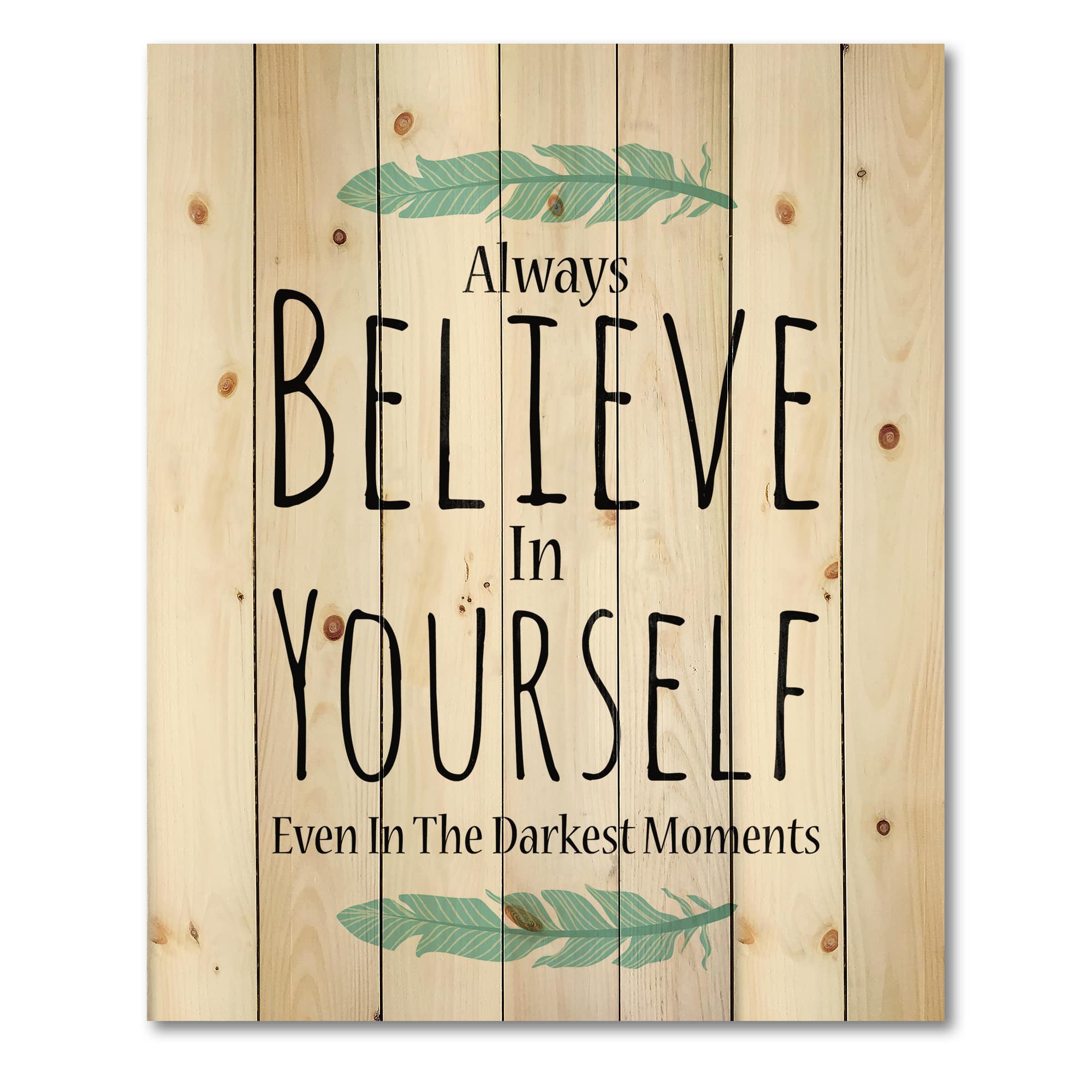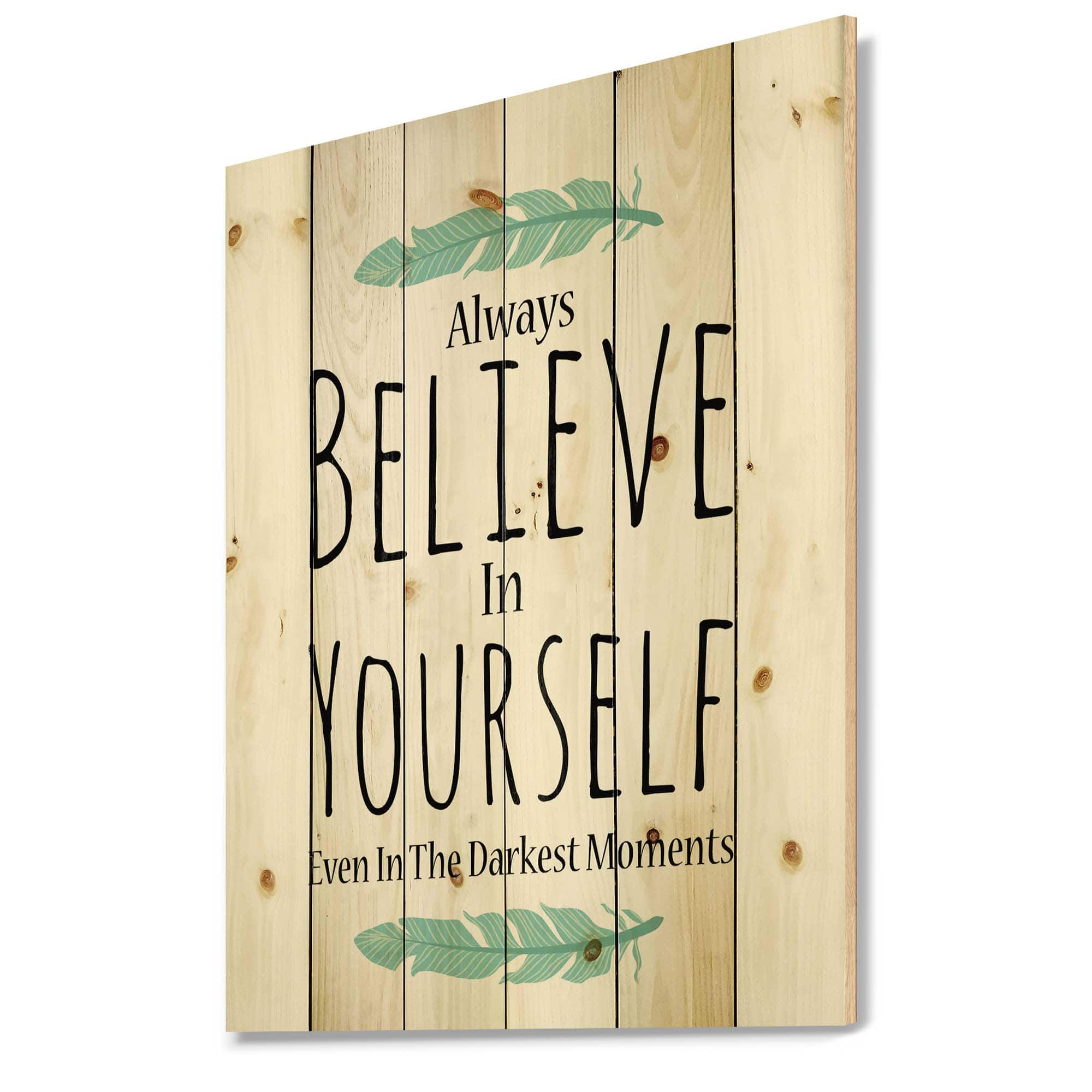 Designart - Believe In Yourself In On White - Traditional Print on Natural Pine Wood