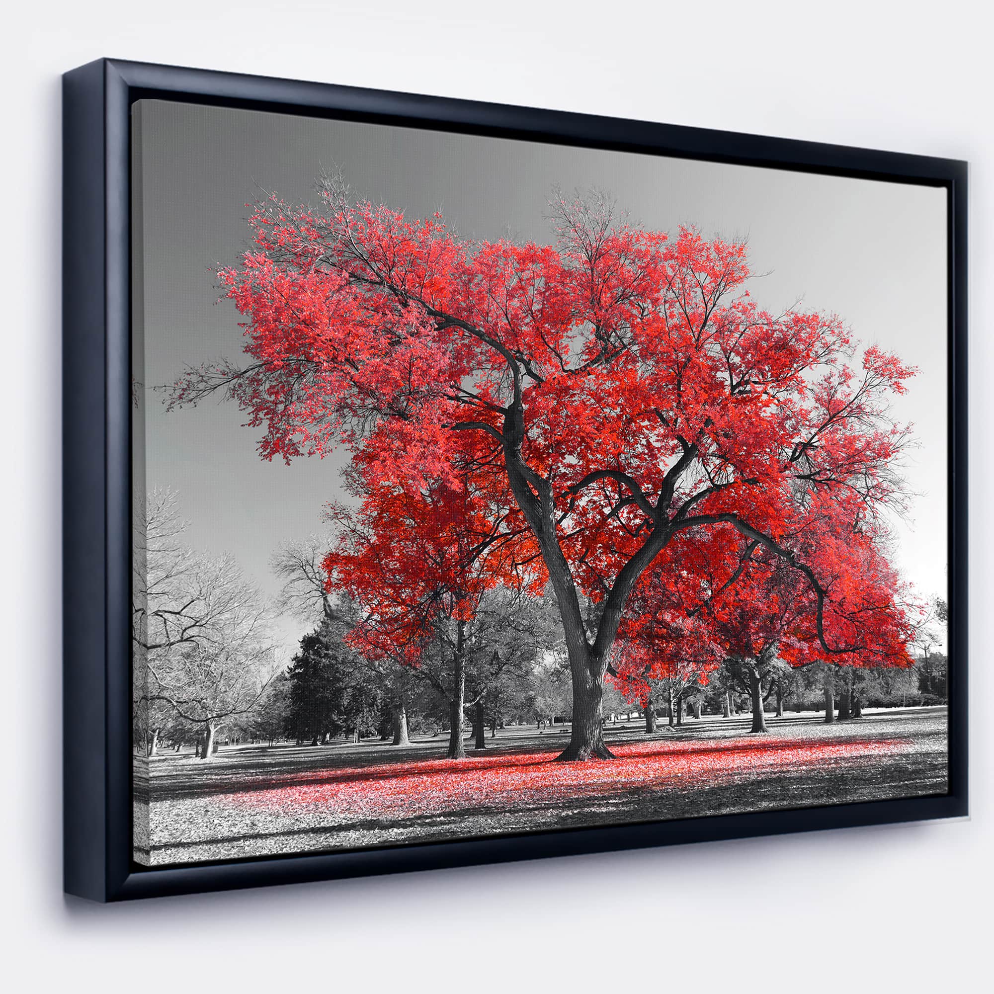 Designart - Big Red Tree on Foggy Day - Landscape Framed Canvas Art Print