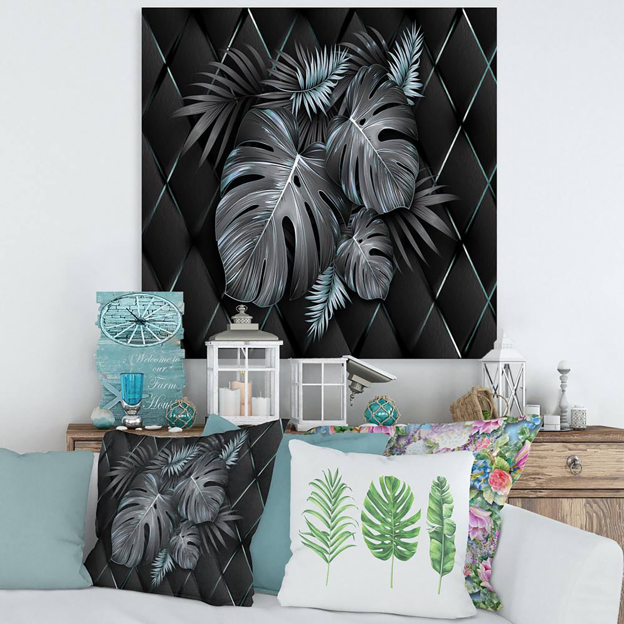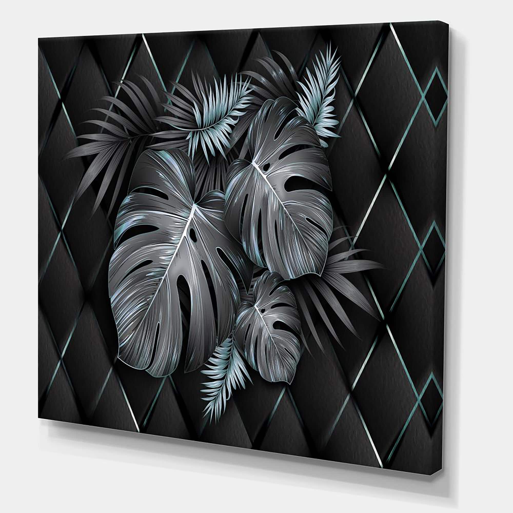 Designart - Black and Gold Tropical Leaves I - Modern Canvas Wall Art Print