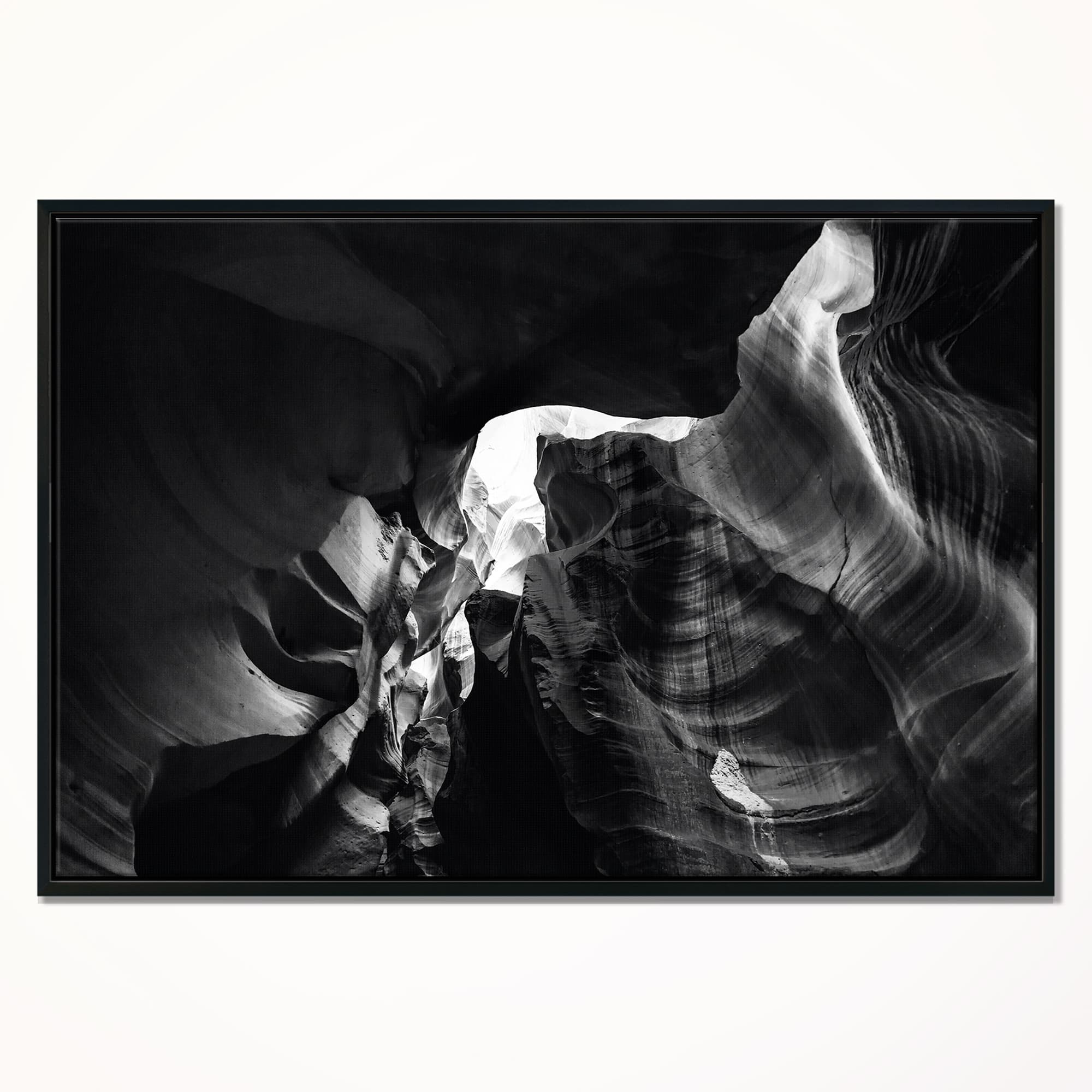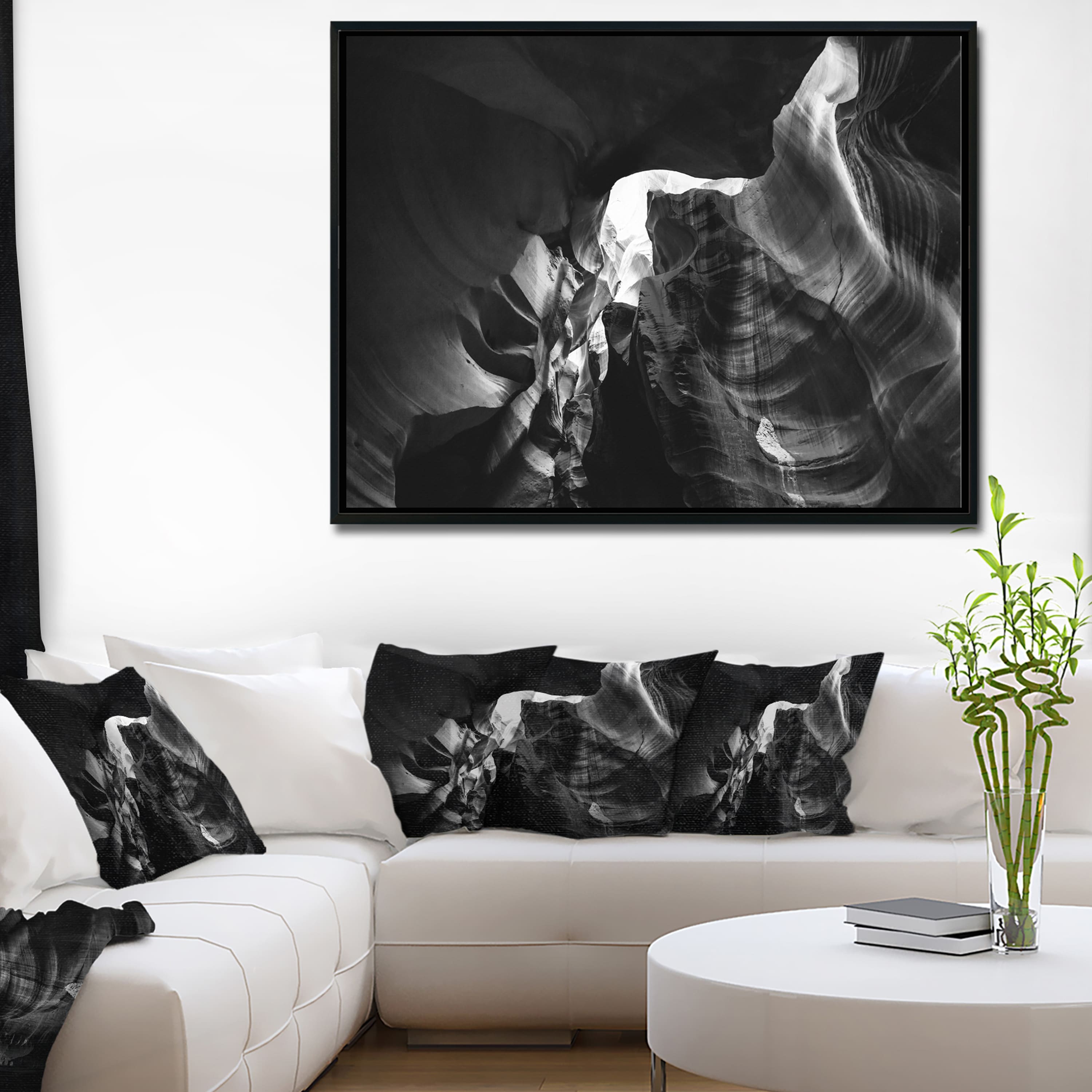 Designart - Black and White Antelope Canyon - Landscape Photography Canvas Print in Black Frame