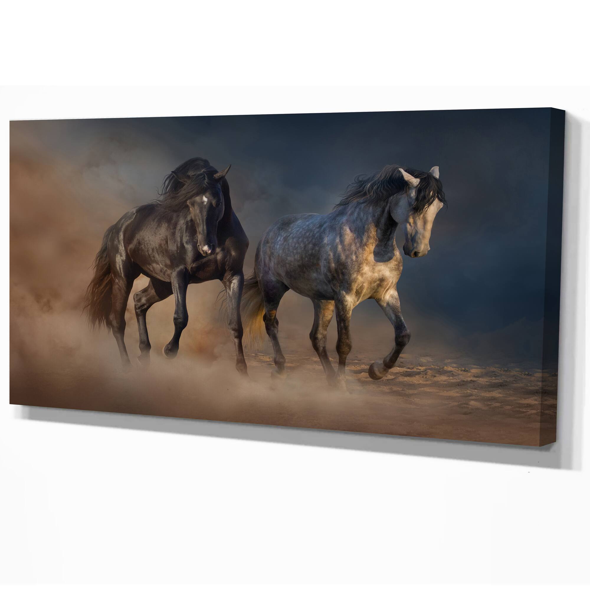 Designart - Black and white horse run - Animals photographyPrint on Wrapped Canvas
