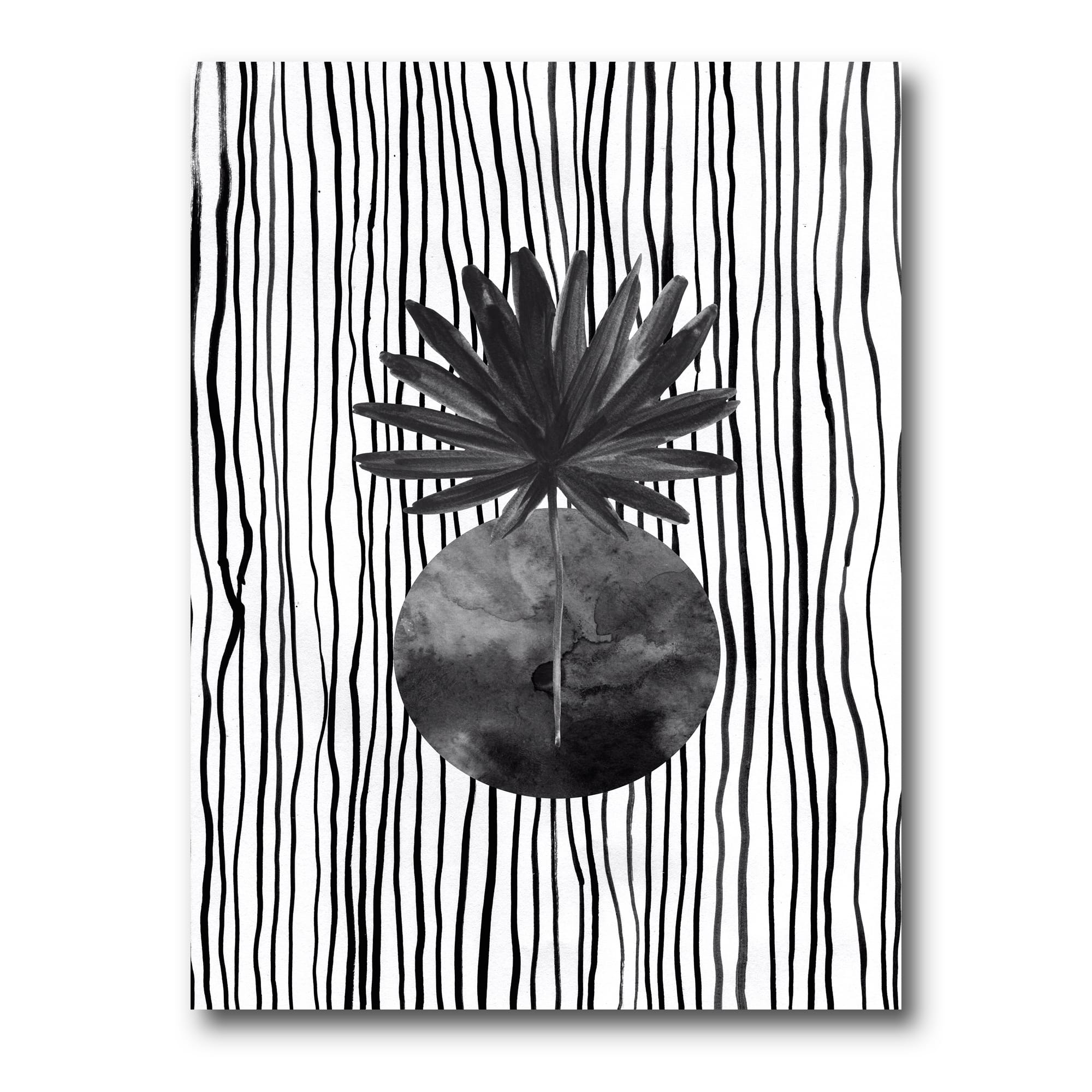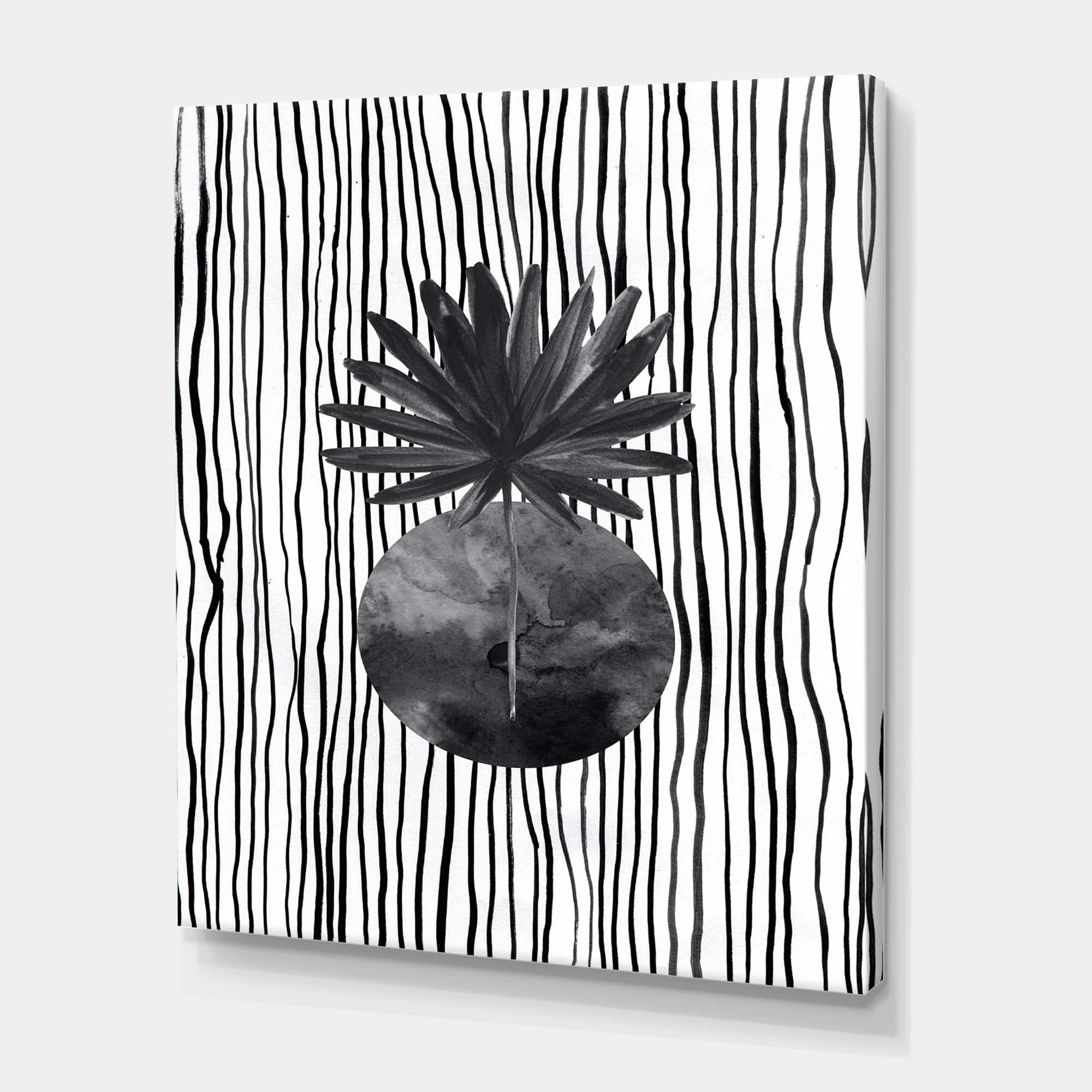 Designart - Black and White Tropical Leaf On Striped I - Modern Canvas Wall Art Print