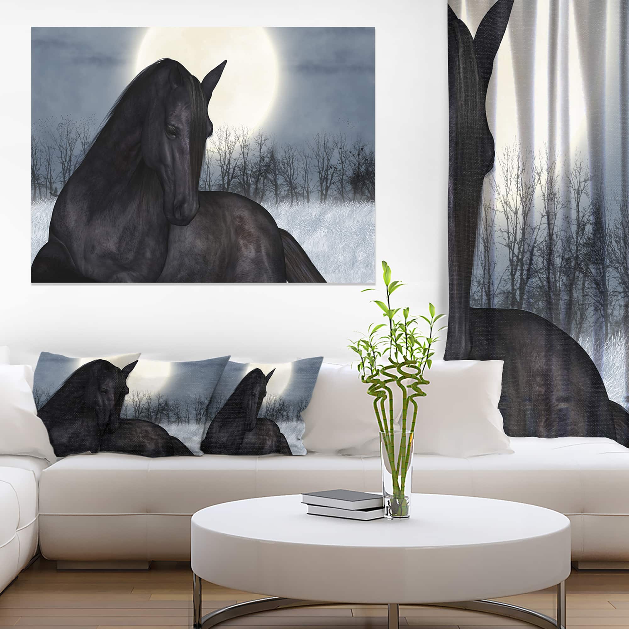 Designart - Black Horse in Moonlight - Animal Canvas Art Print
