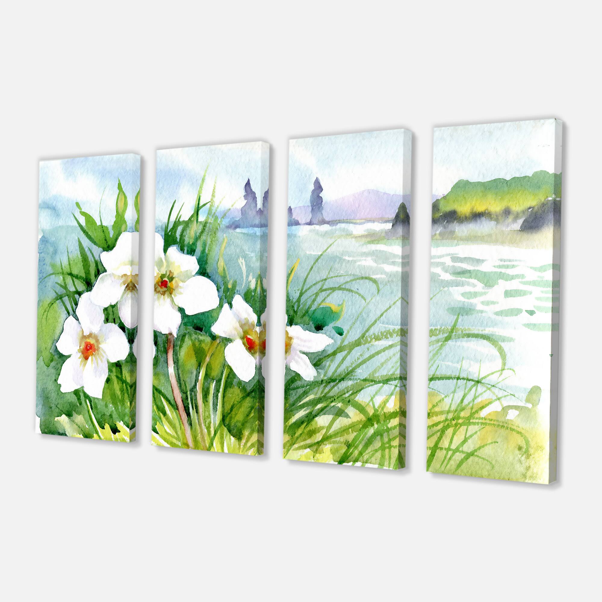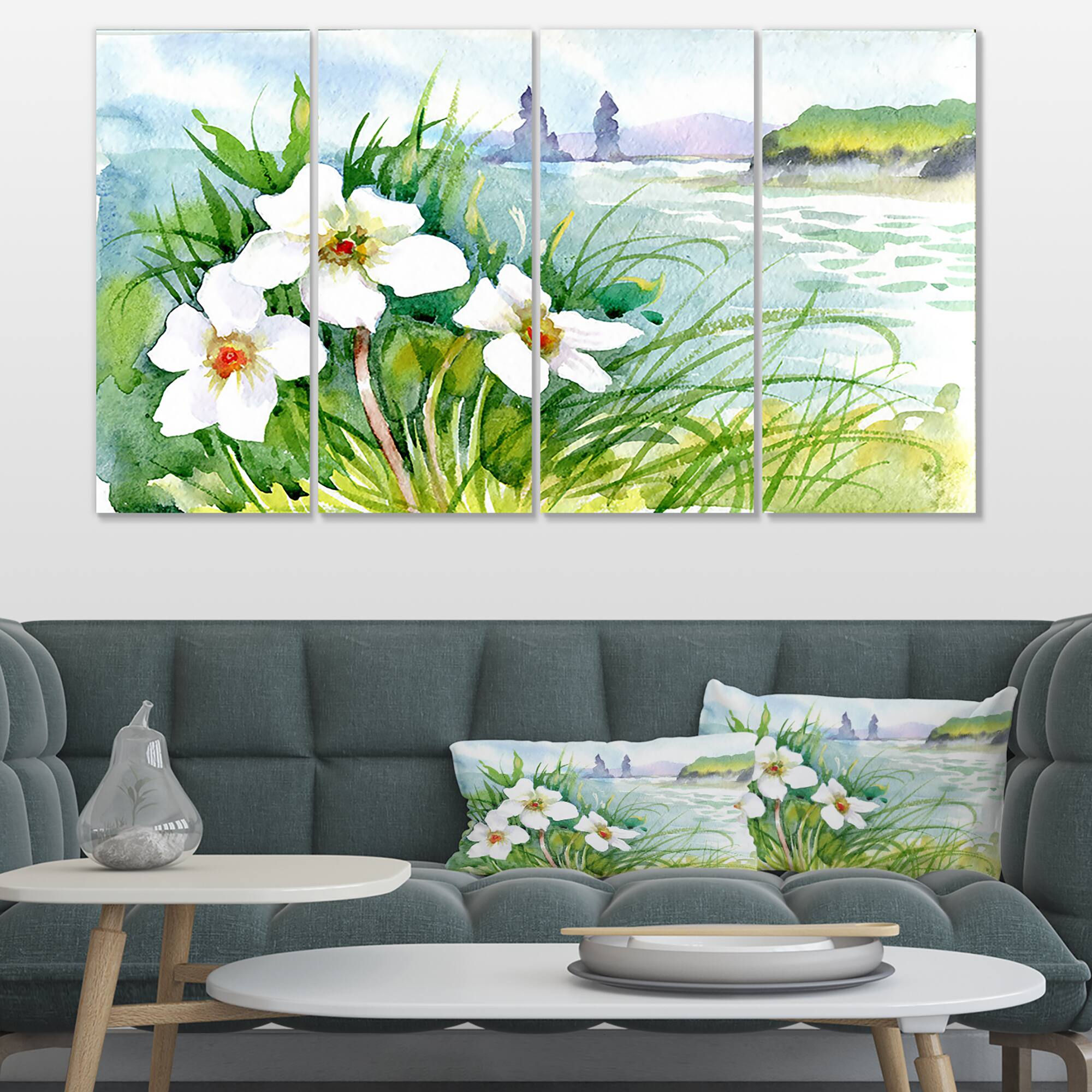Designart - Blooming Flowers on Summer River - Landscape Artwork Canvas