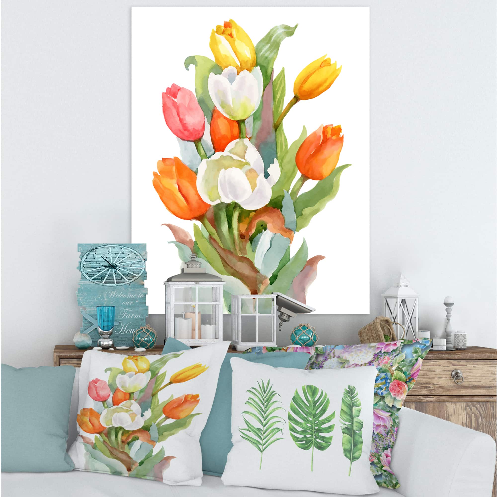 Designart - Blooming White and Orange Tulips Flower - Traditional Canvas Wall Art Print