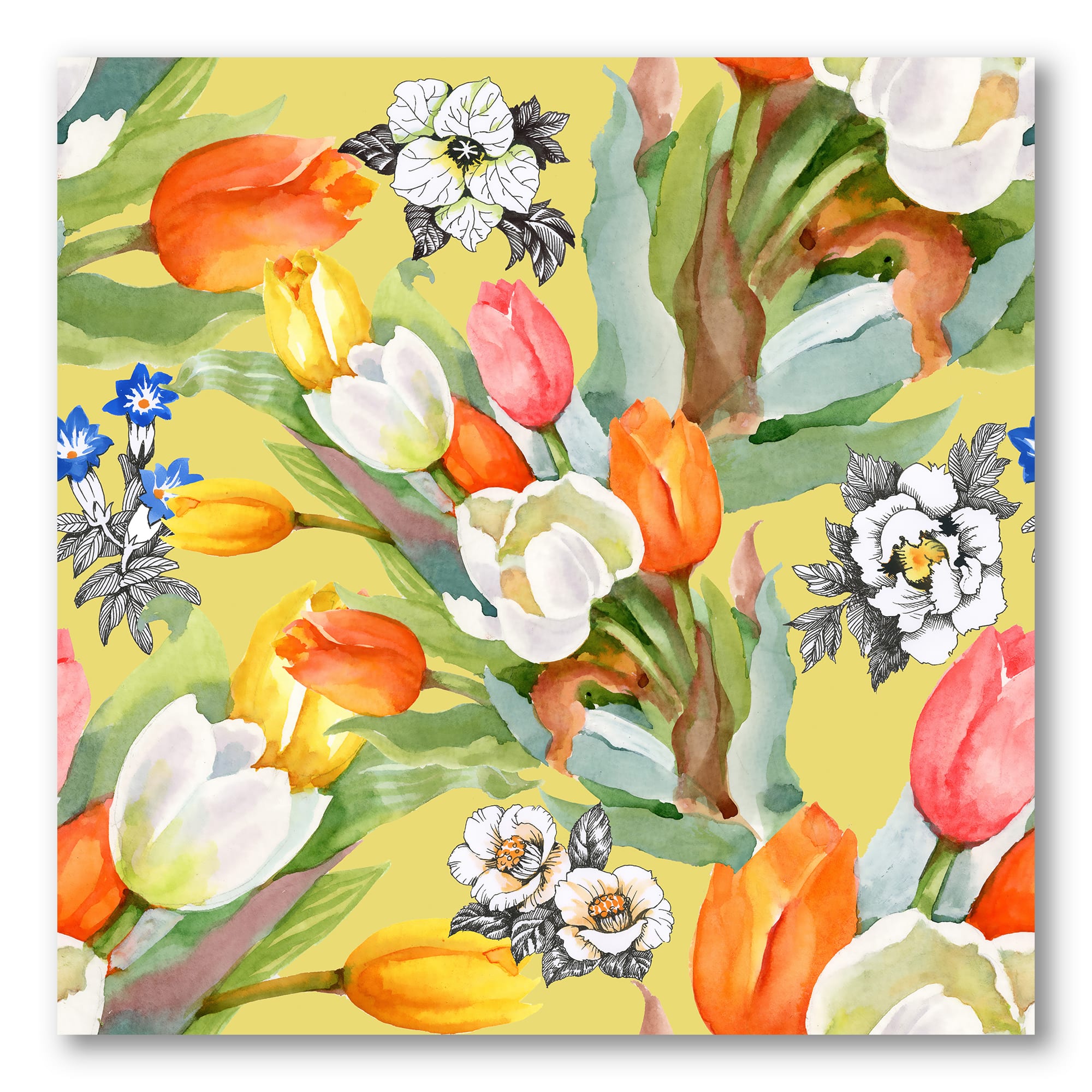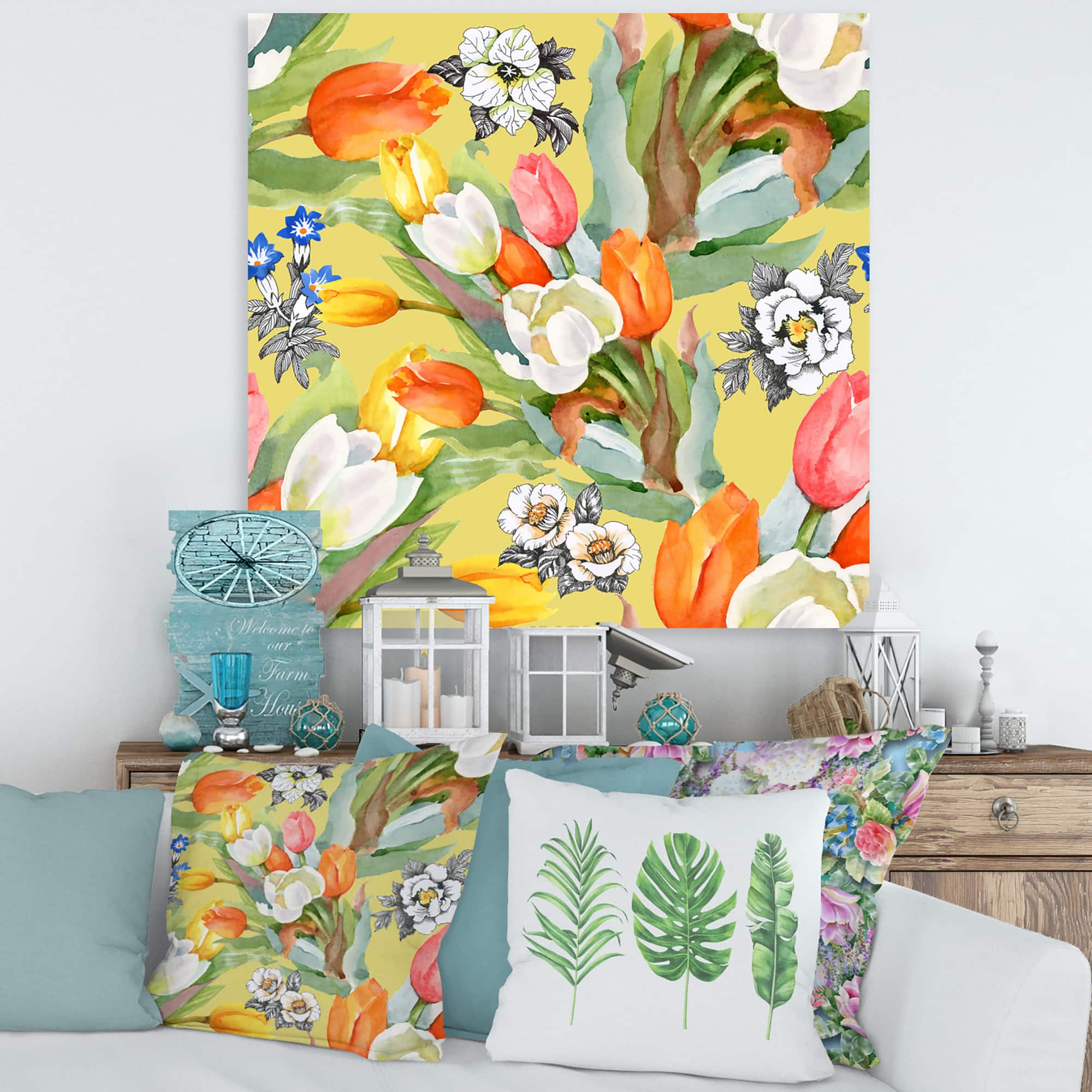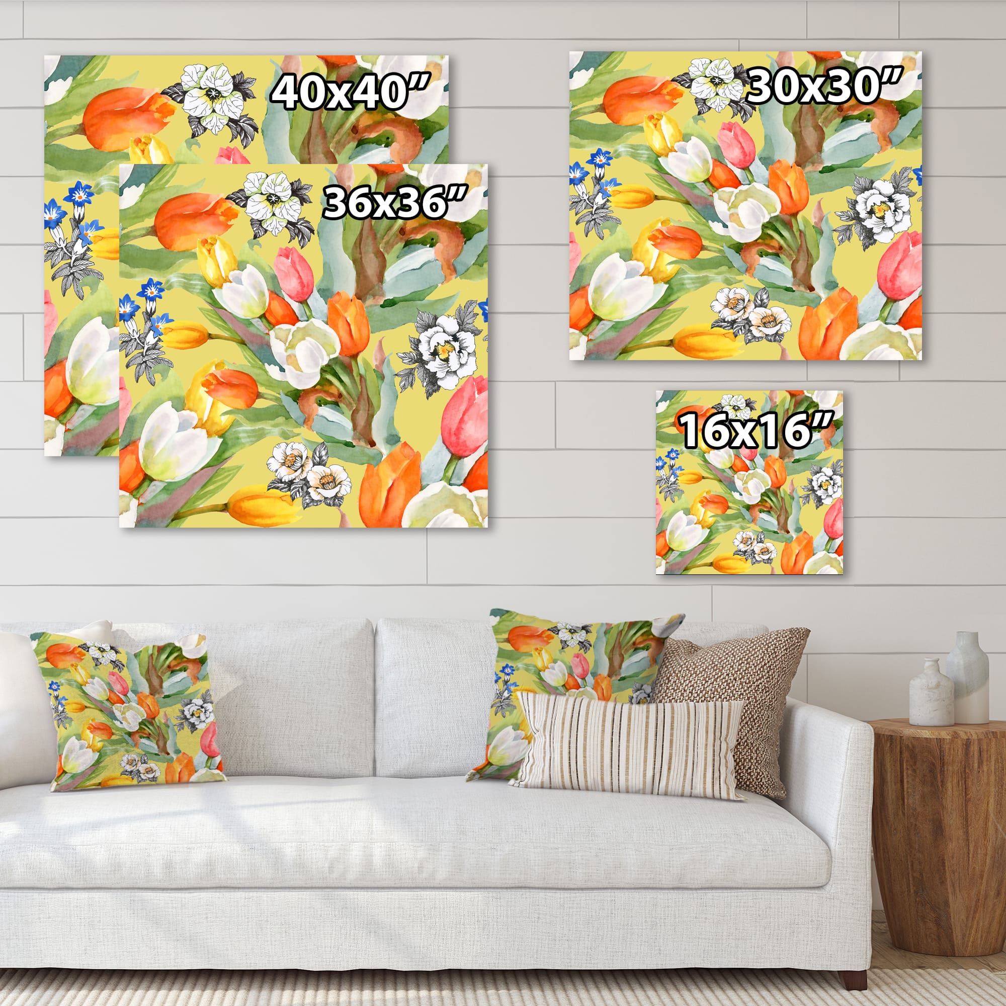 Designart - Blooming White and Orange Tulips I - Traditional Canvas Wall Art Print