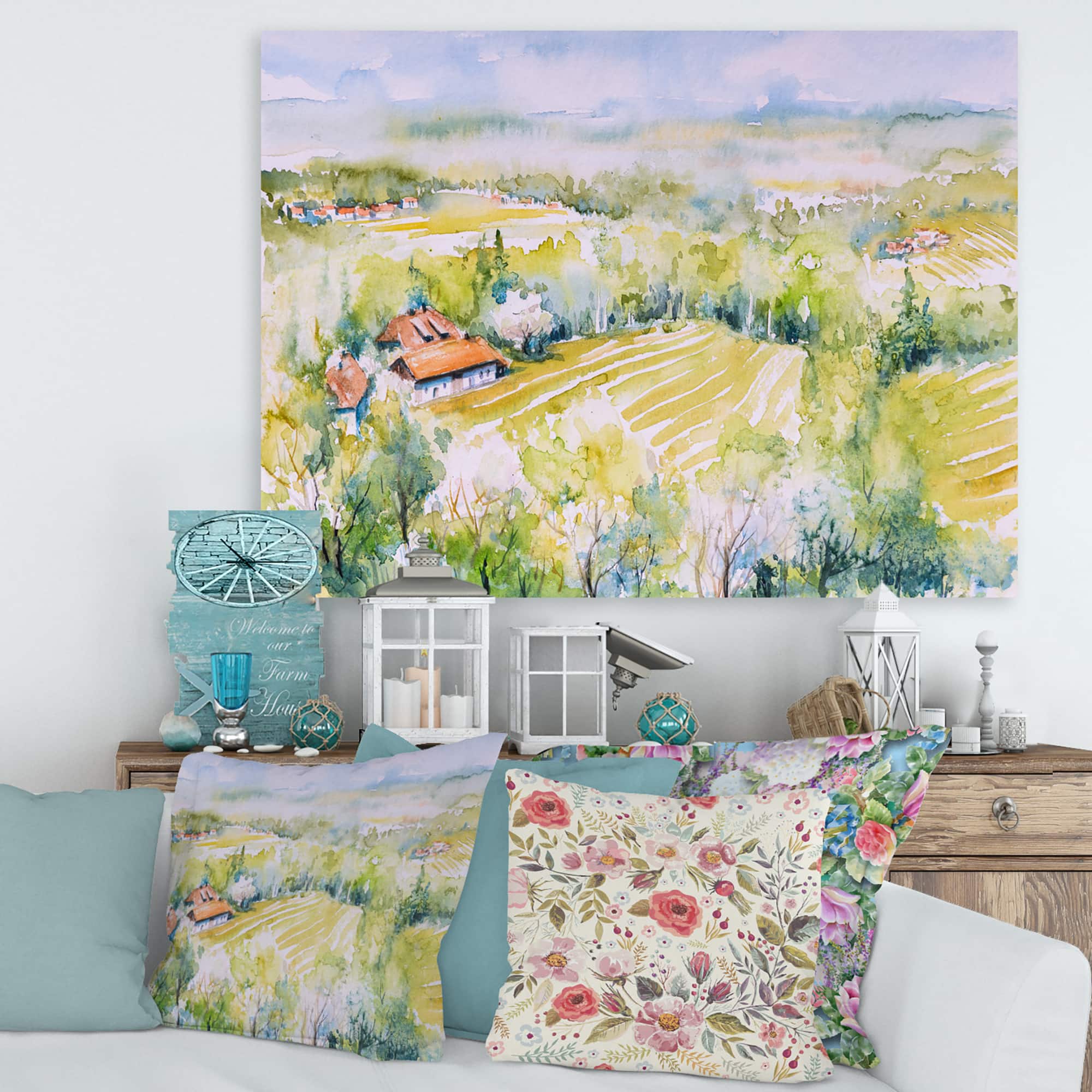 Designart - Blossoming Green Fields In Countryside - Country Canvas Wall Art Print