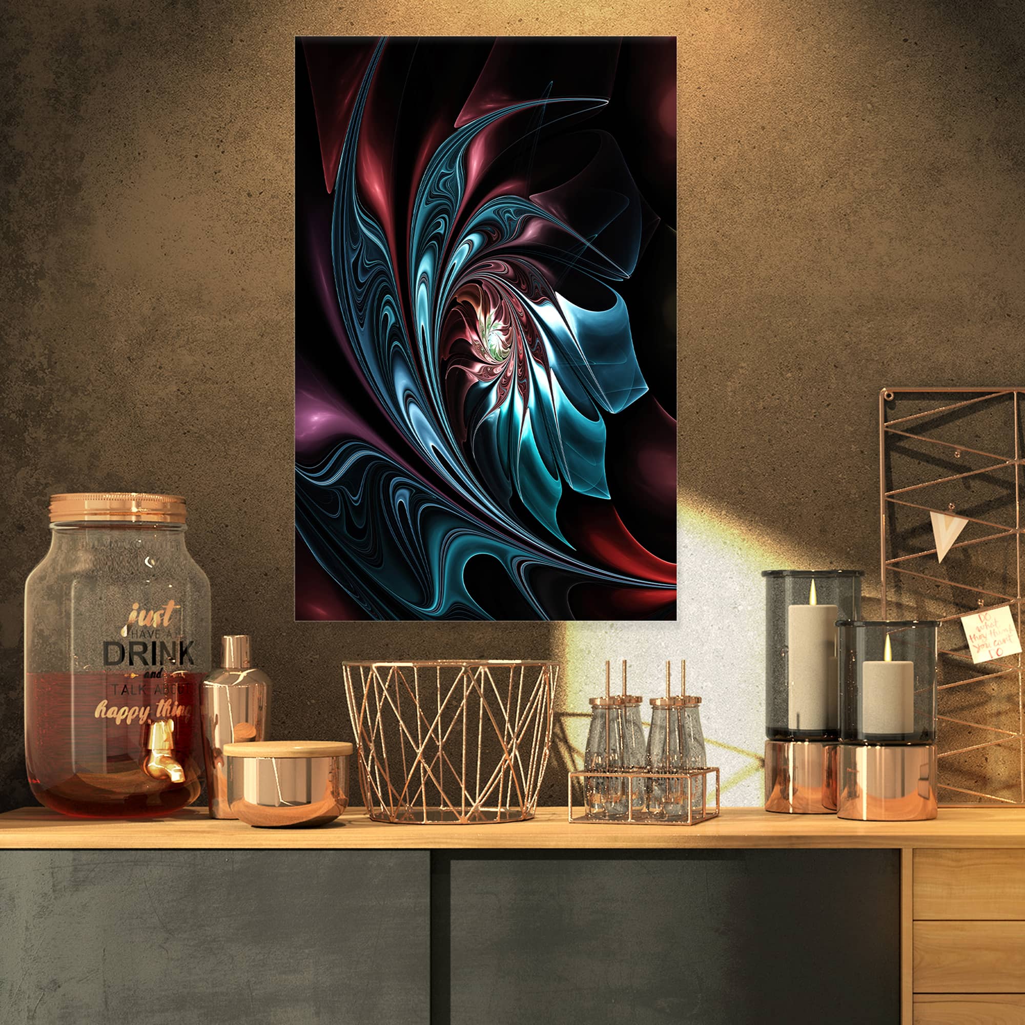 Designart - Blue Abstract Floral Shapes - Large Floral Wall Art Canvas