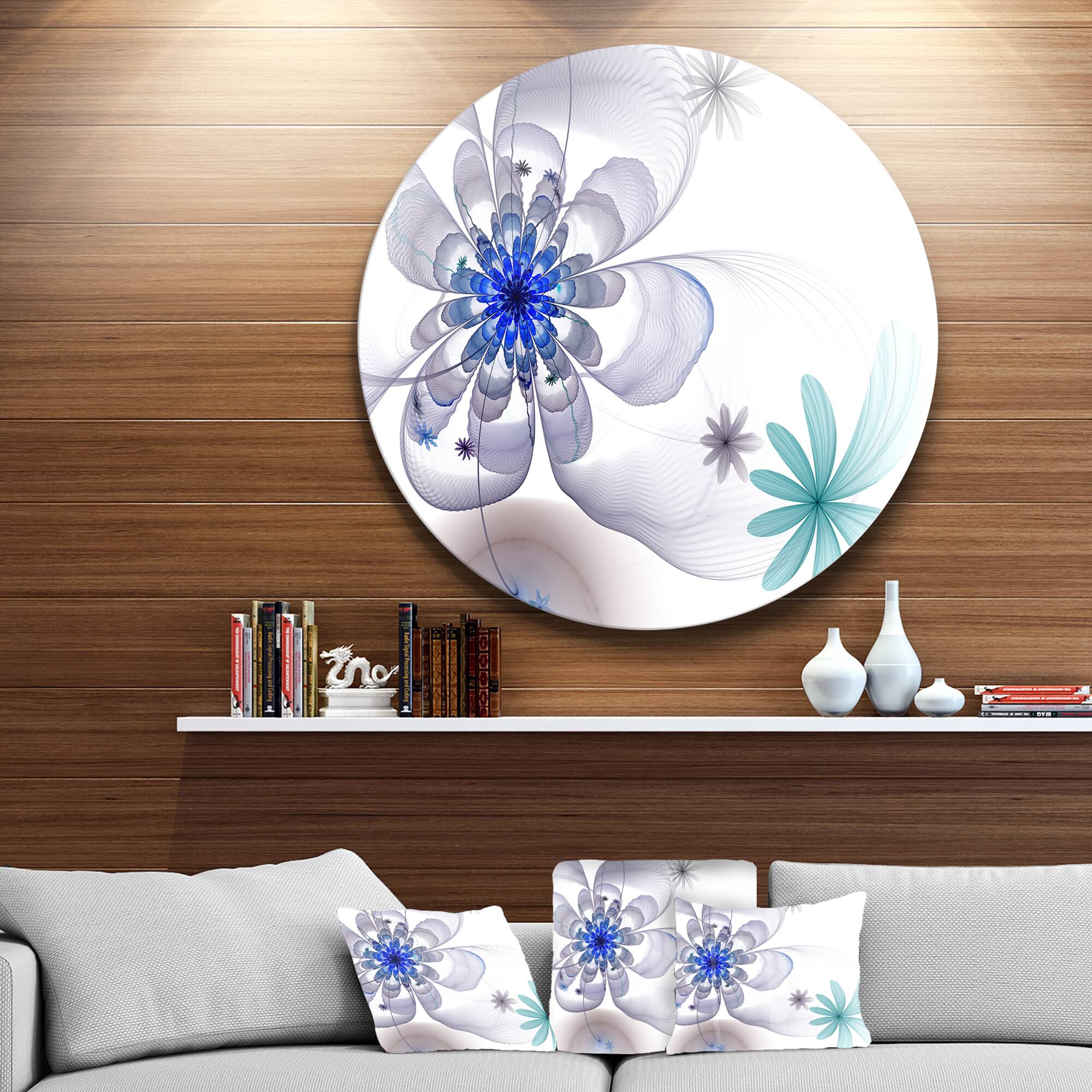 Designart - Blue and Grey Symmetrical Fractal Flower' Floral Metal Circle Wall Art