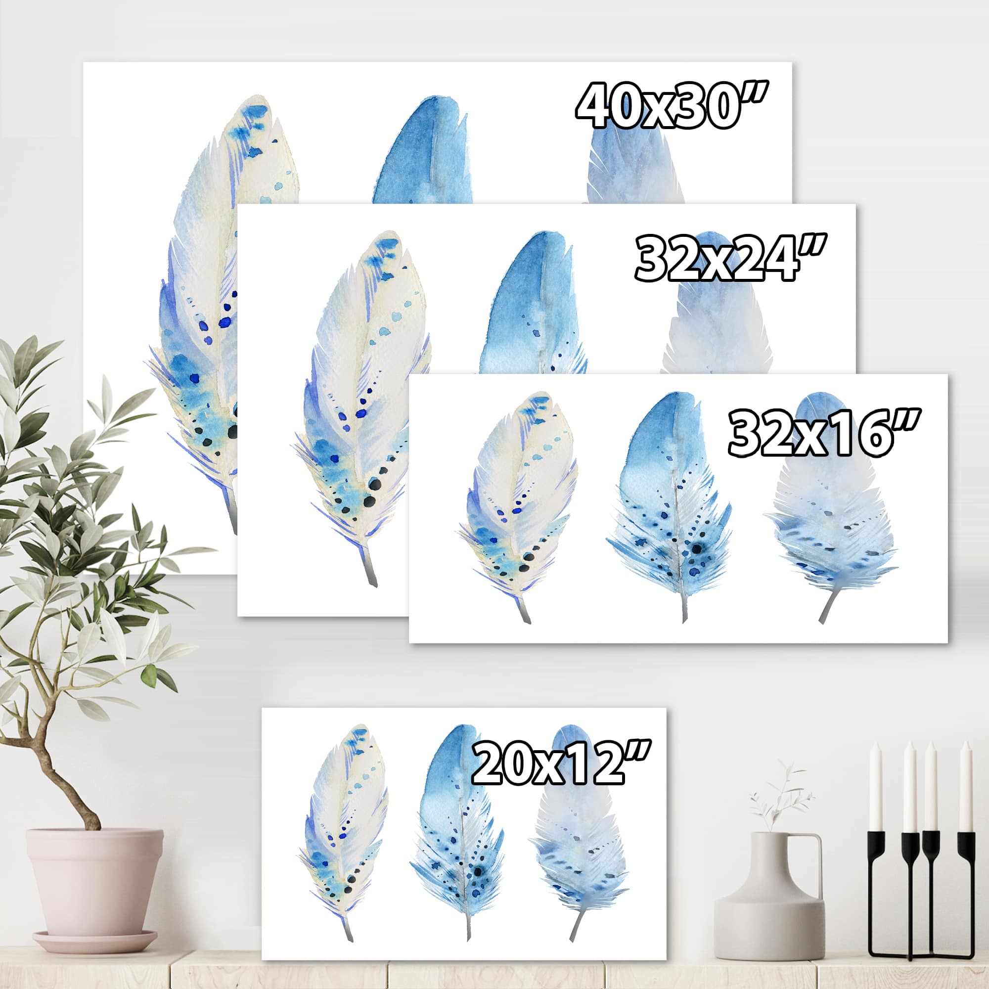 Designart - Blue Boho Feathers II - Lake House Canvas Wall Art Print