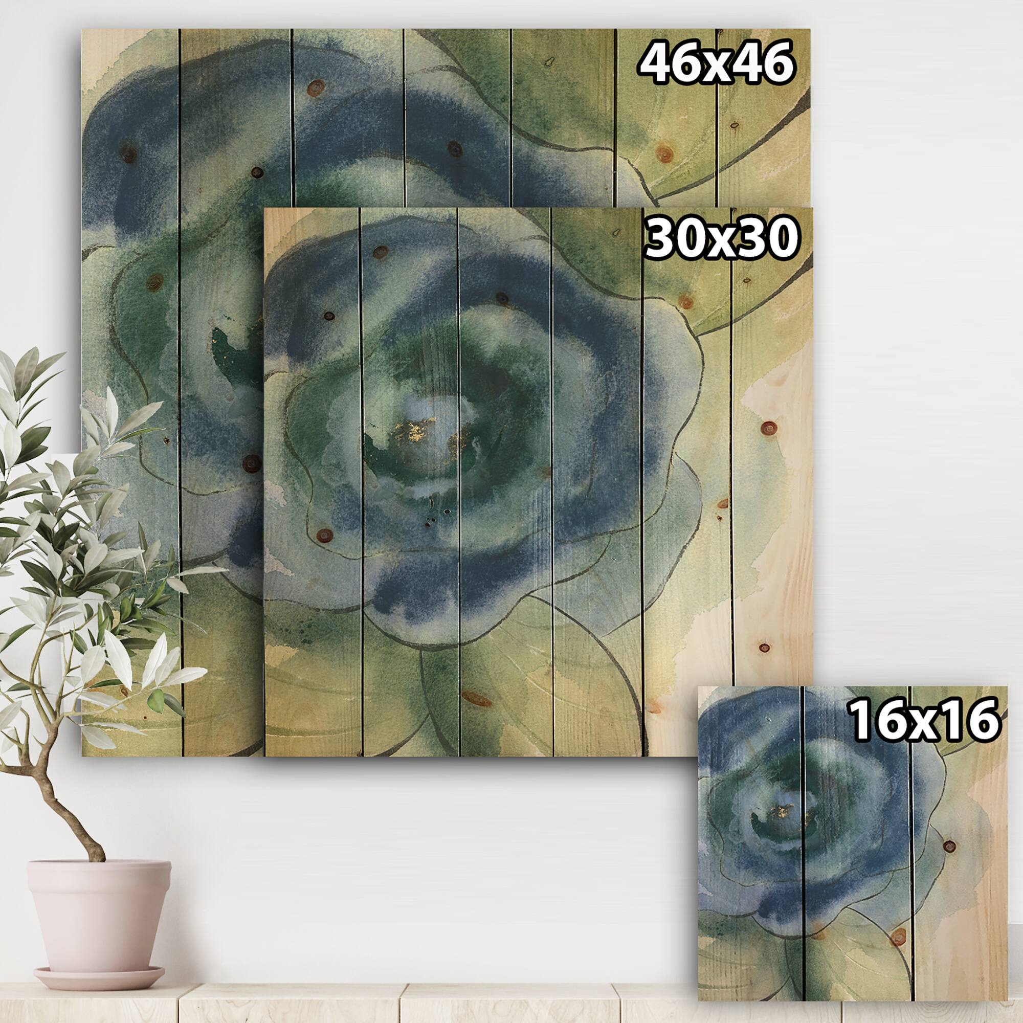 Designart - Blue Floral Poppies IV - Cottage Print on Natural Pine Wood