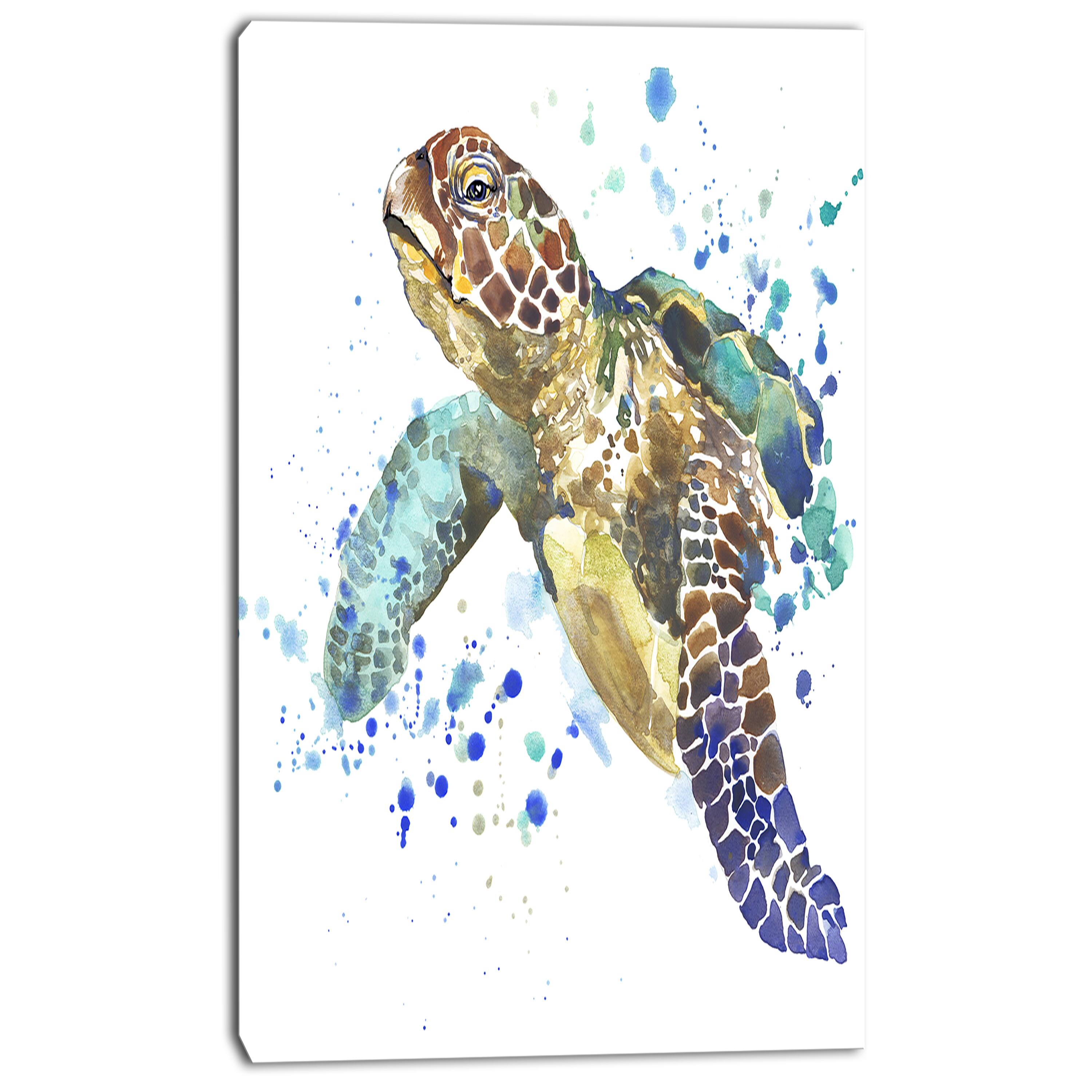 Designart - Blue Sea Turtle - Animal Canvas Art Print