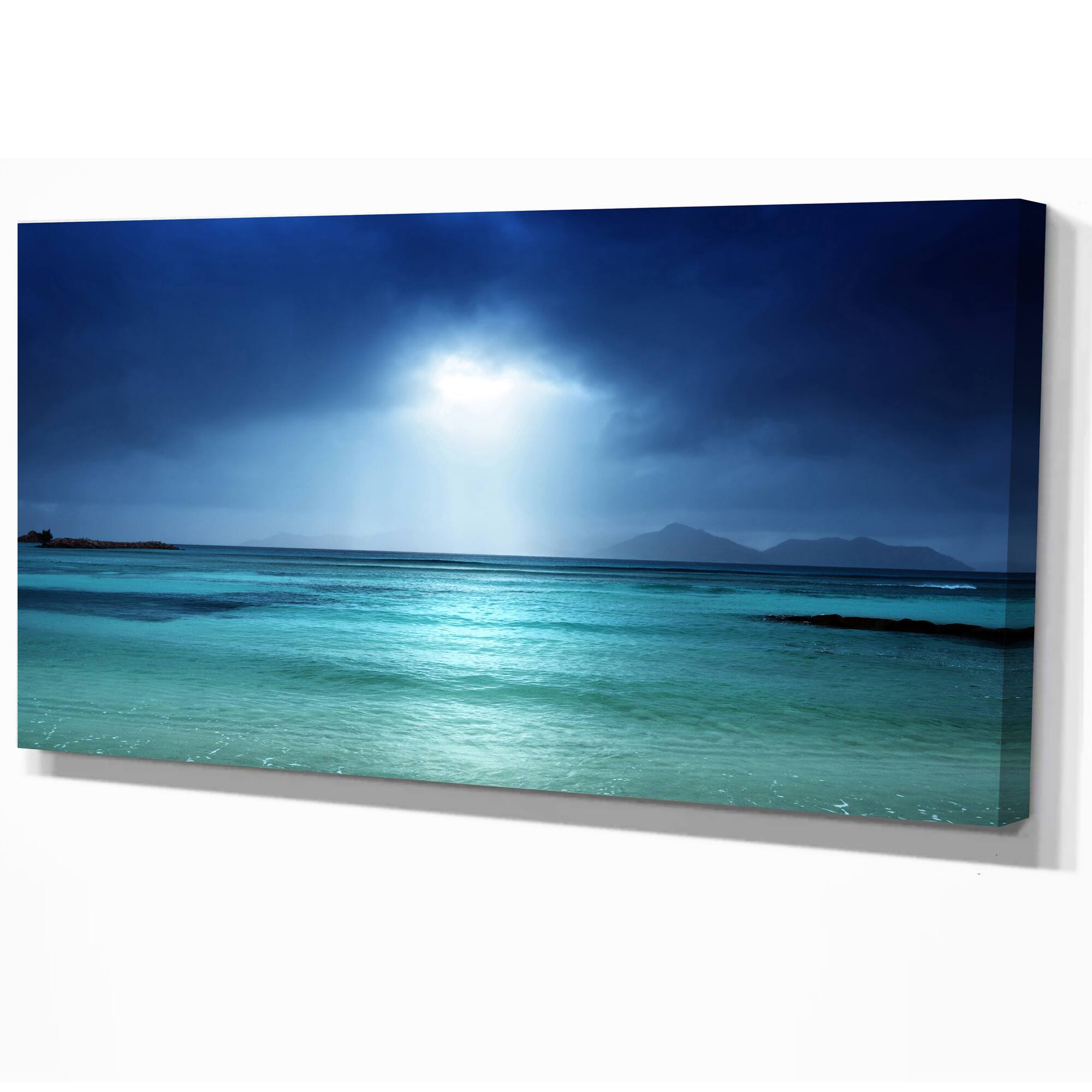 Designart - Blue sky on the beach of la Digue island Seychelles - Sea & Shore Photographic on wrapped Canvas
