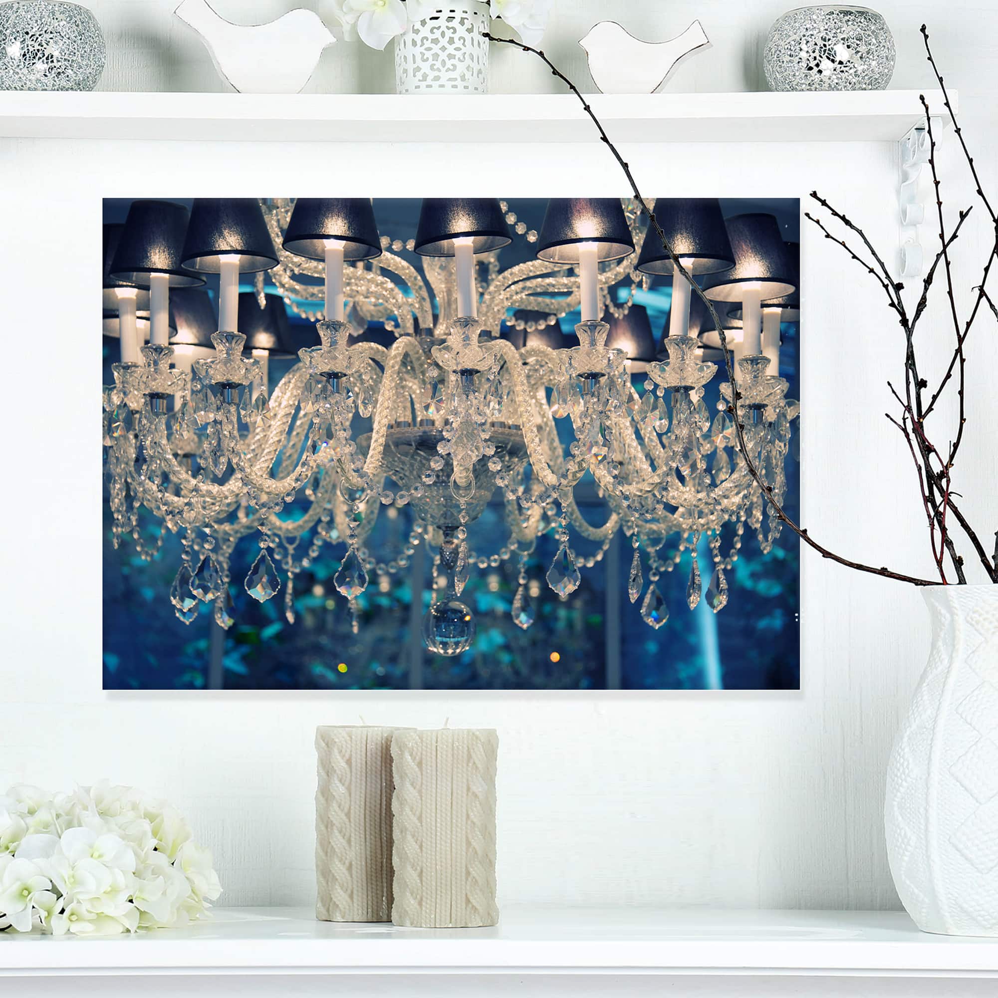 Designart - Blue Vintage Crystal Chandelier - Flower Artwork on Canvas