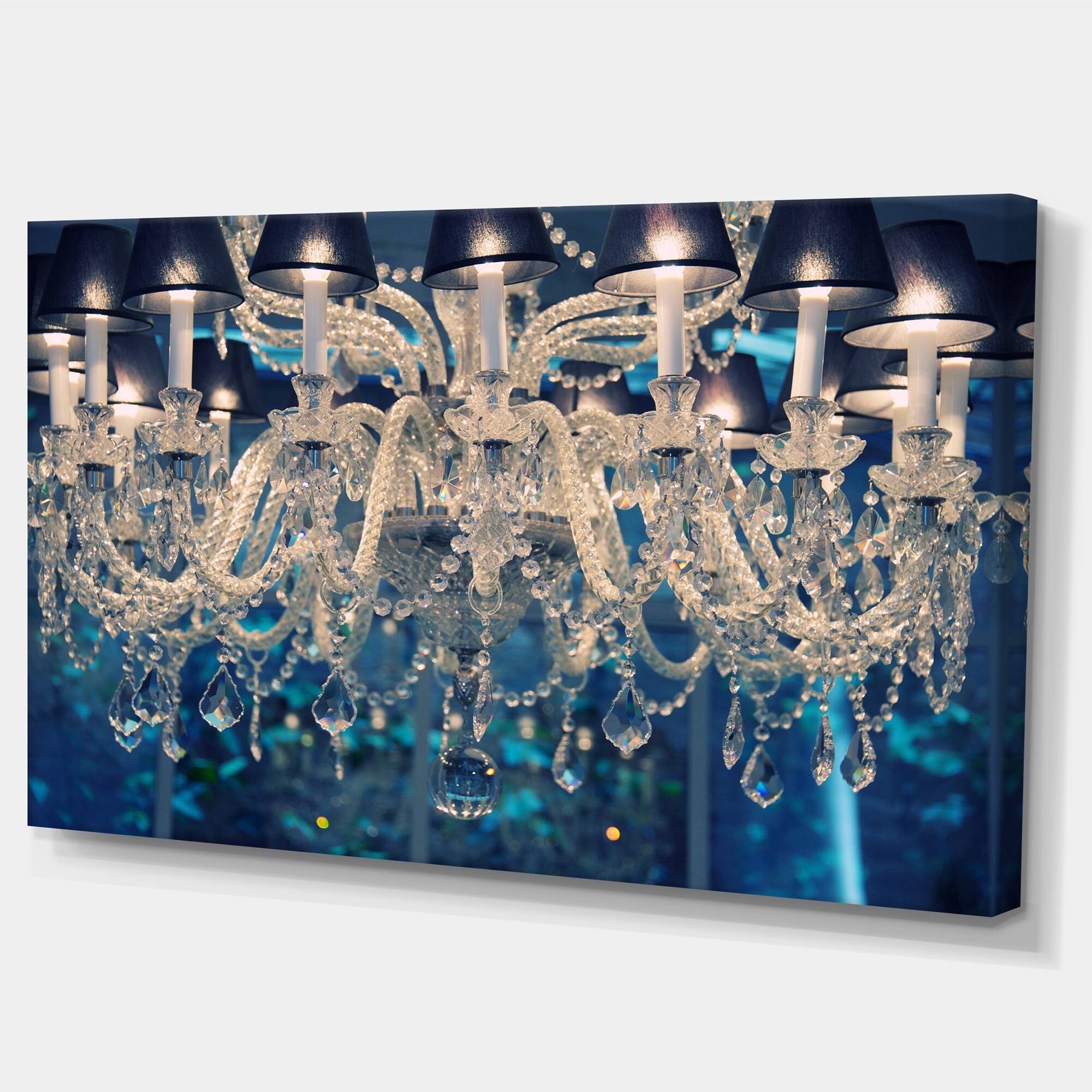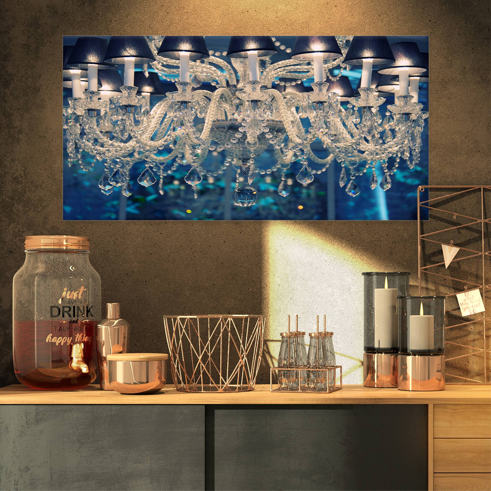 Designart - Blue Vintage Crystal Chandelier - Flower Artwork on Canvas