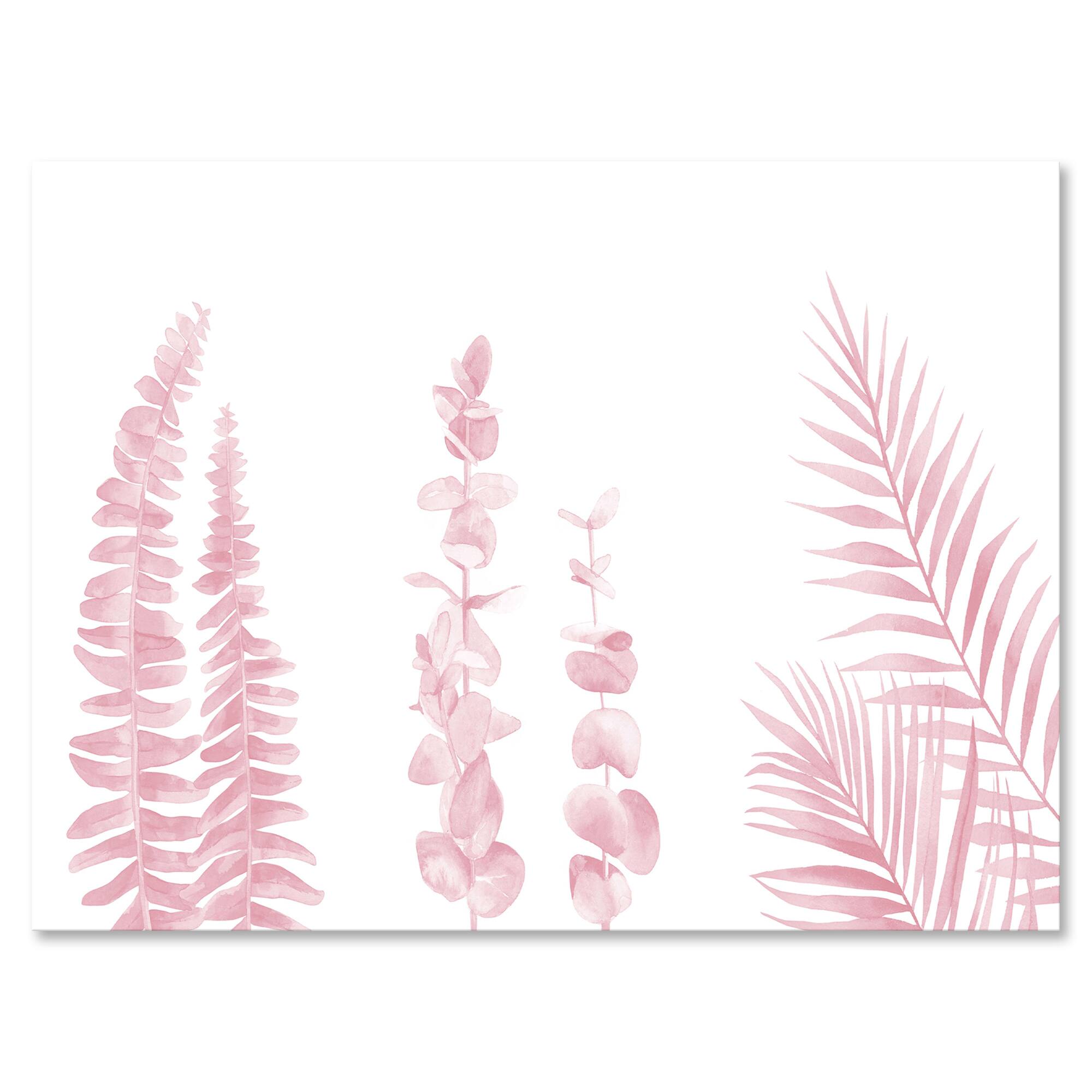 Designart - Blush Pinkeucalyptus and Palm Branches - Shabby Chic Canvas Wall Art Print