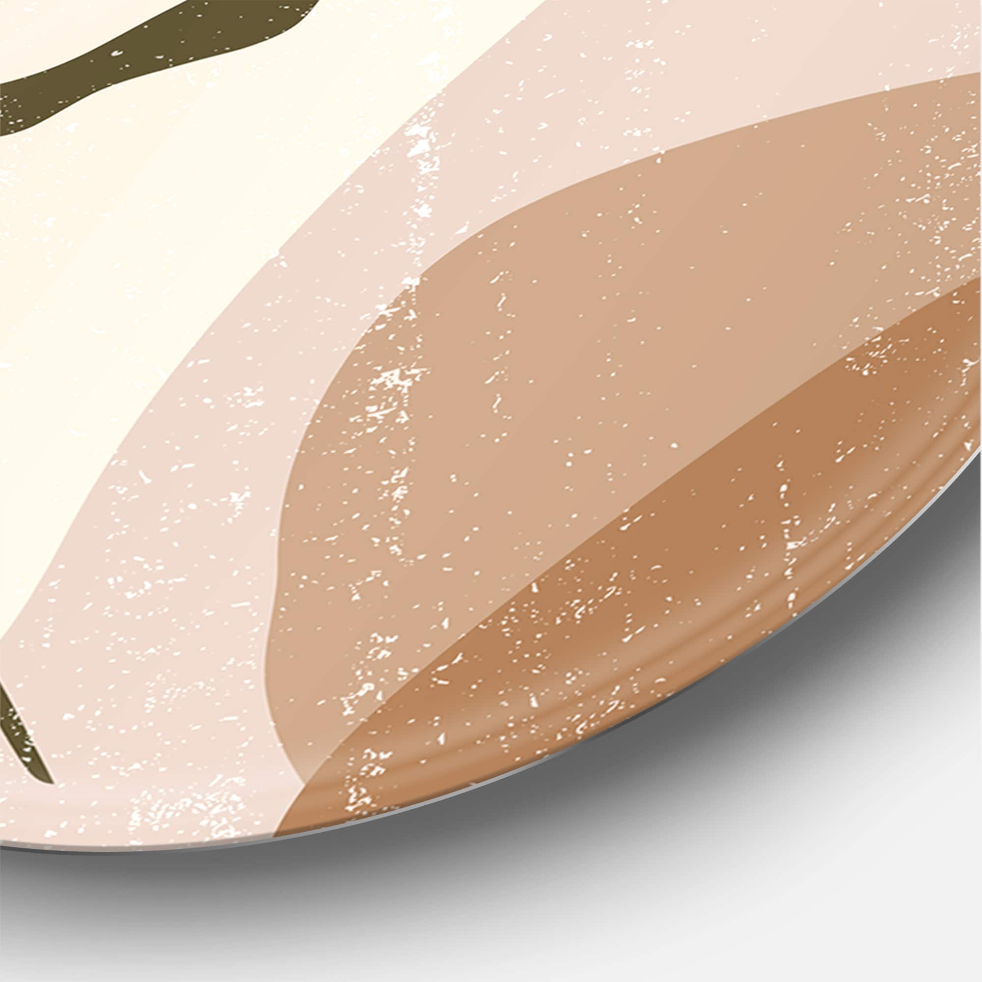 Designart - Botanical Minimalist Leaf In Earth Tones I - Modern Metal Circle Wall Art