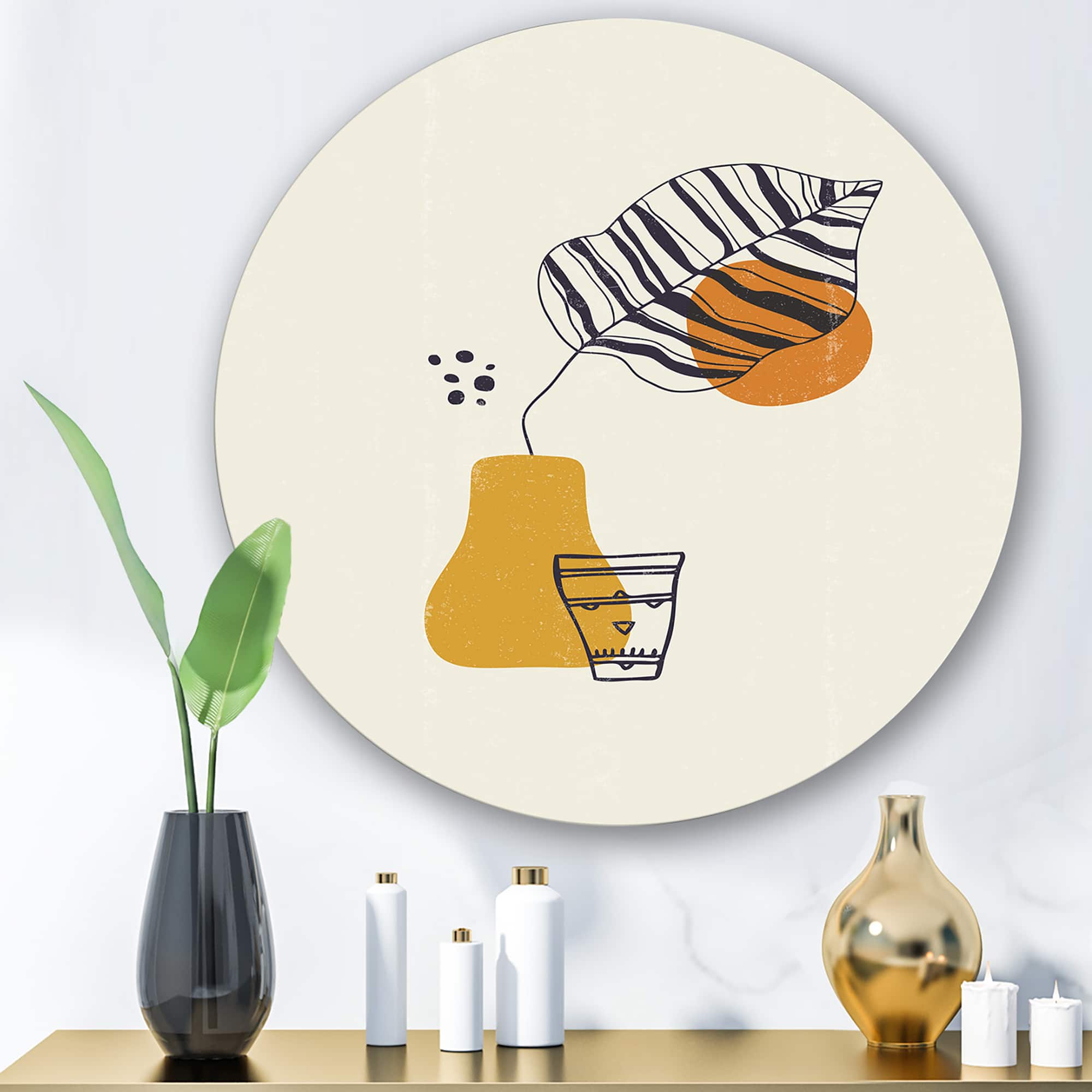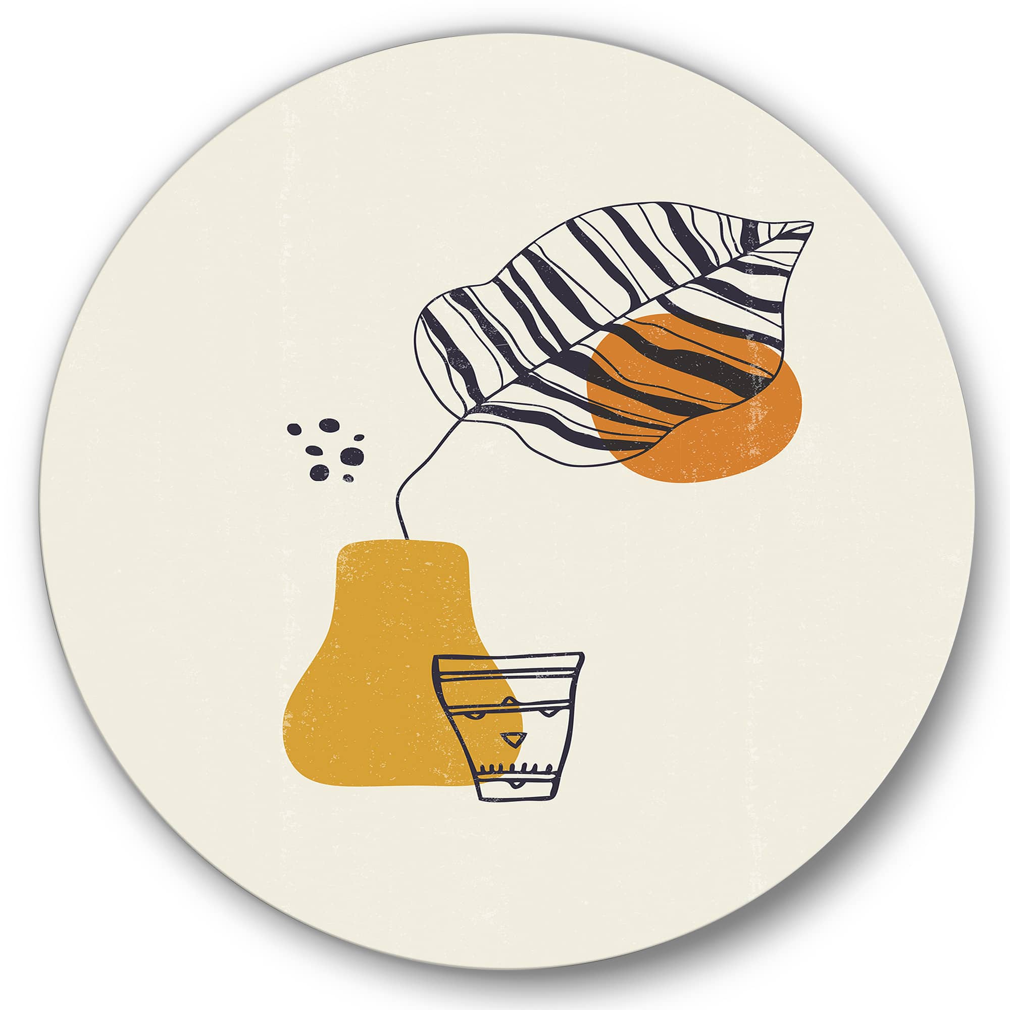 Designart - Botanical Minimalist Leaf With Abstract Shapes III - Modern Metal Circle Wall Art