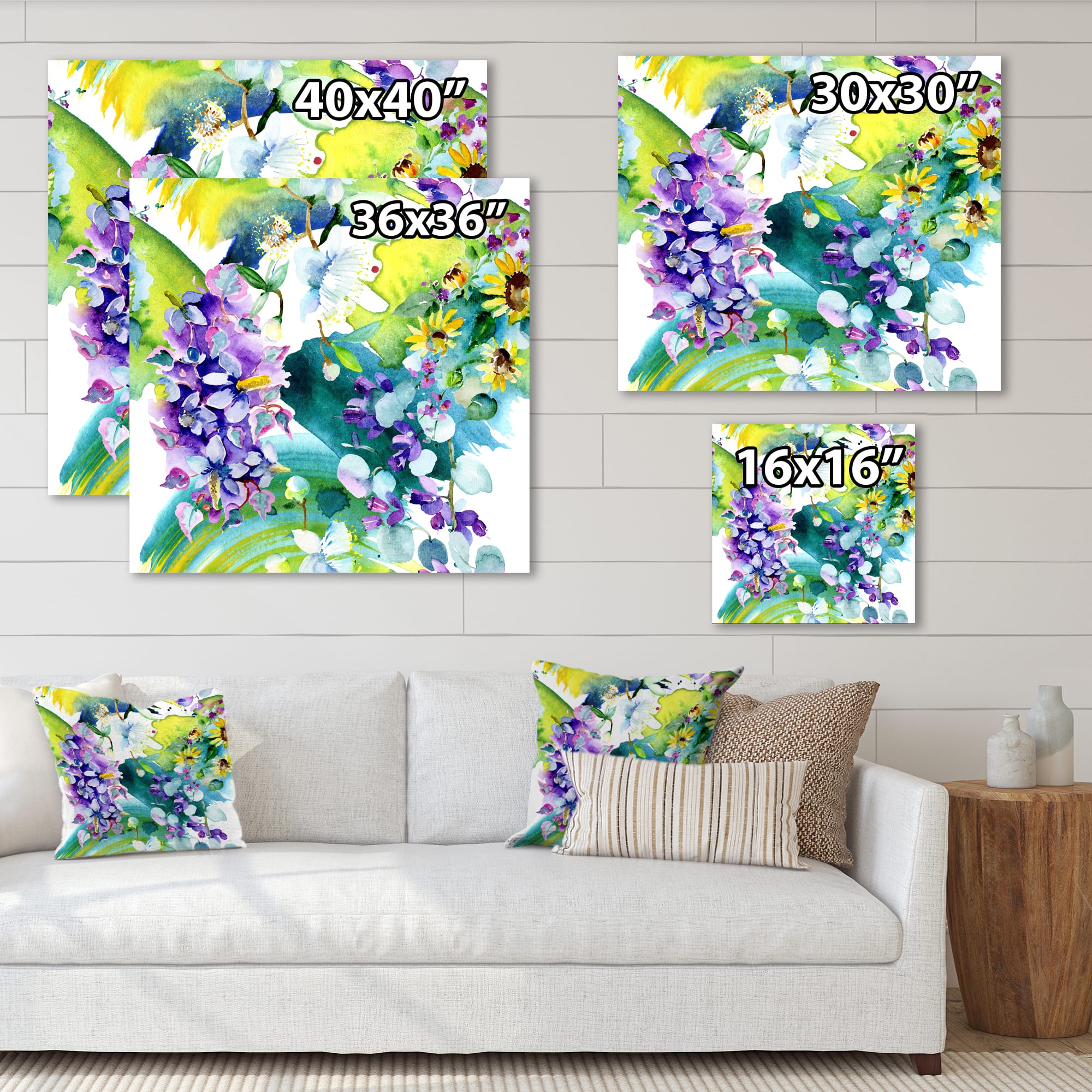 Designart - Bouquet of Wildflowers and Sunflowers - Farmhouse Canvas Wall Art Print