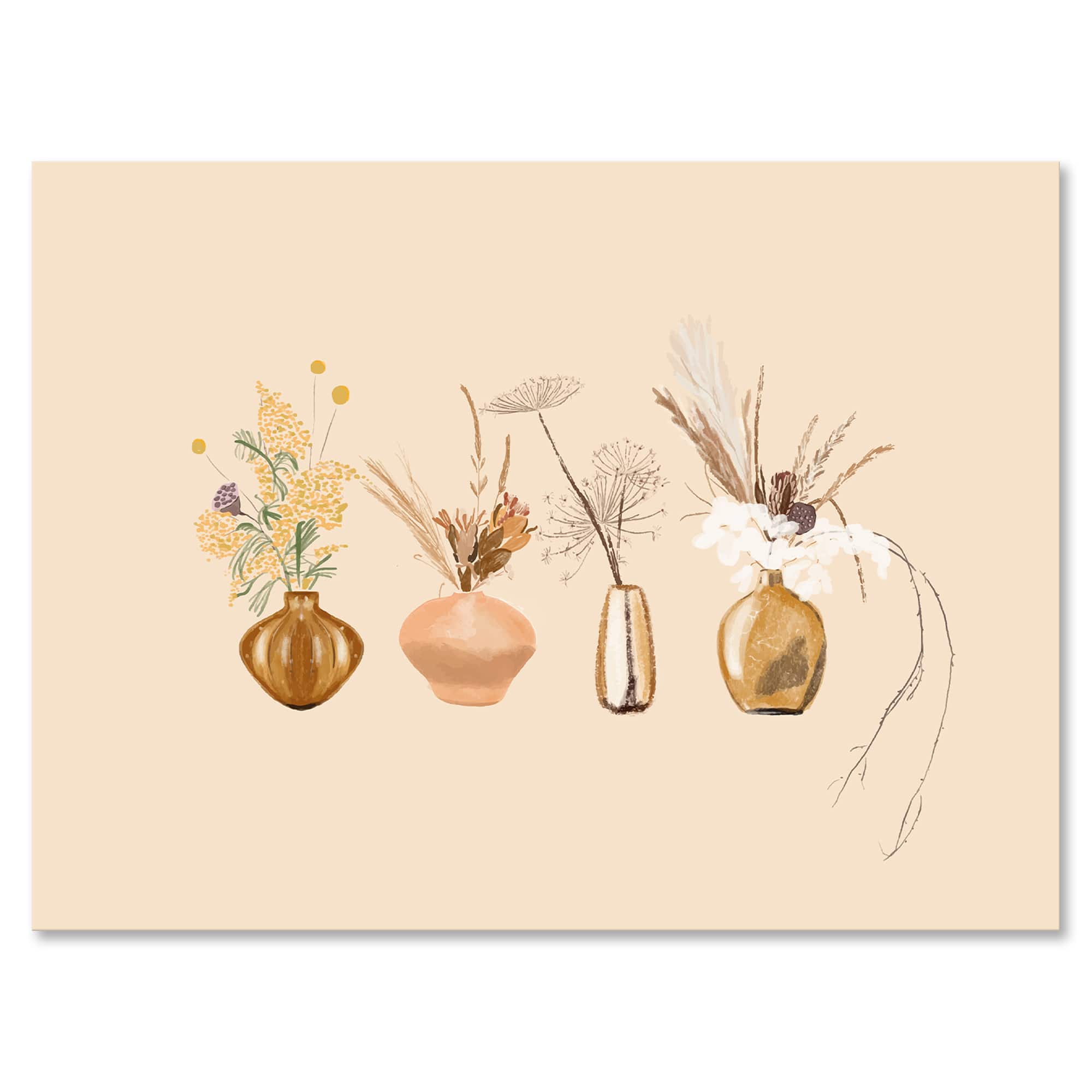 Designart - Bouquets Of Wildflowers In Gold Vases II - Traditional Canvas Wall Art Print