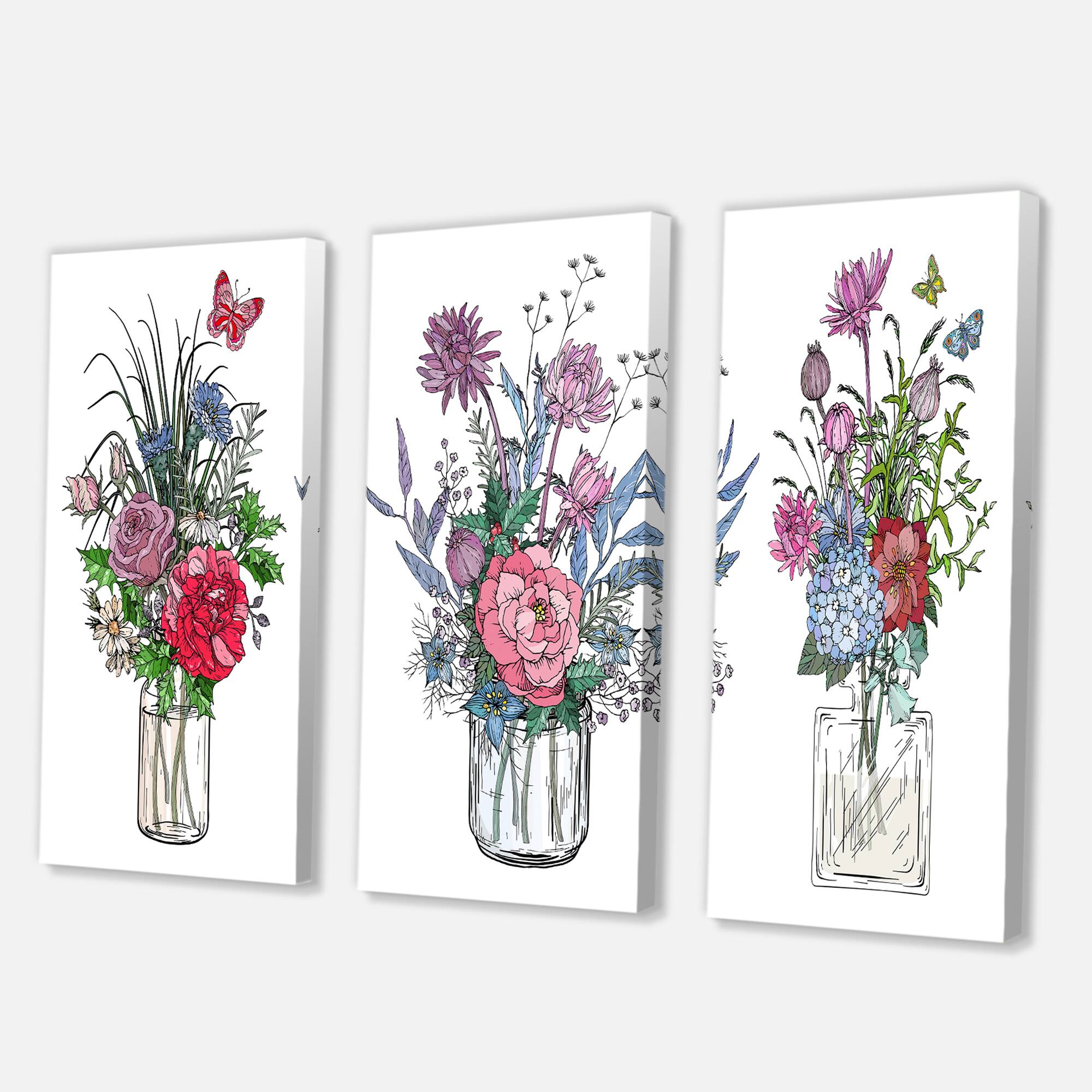 Designart - Bouquets of Wildflowers In Transparent Vases I - Farmhouse Canvas Wall Art Print