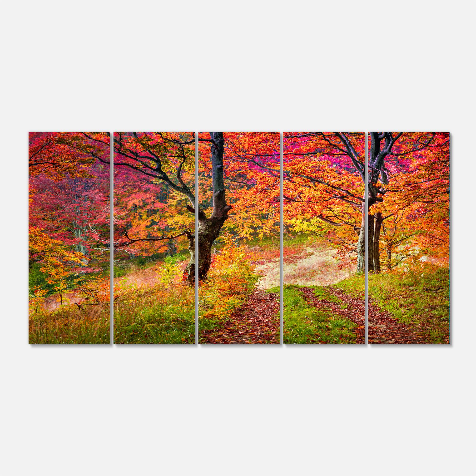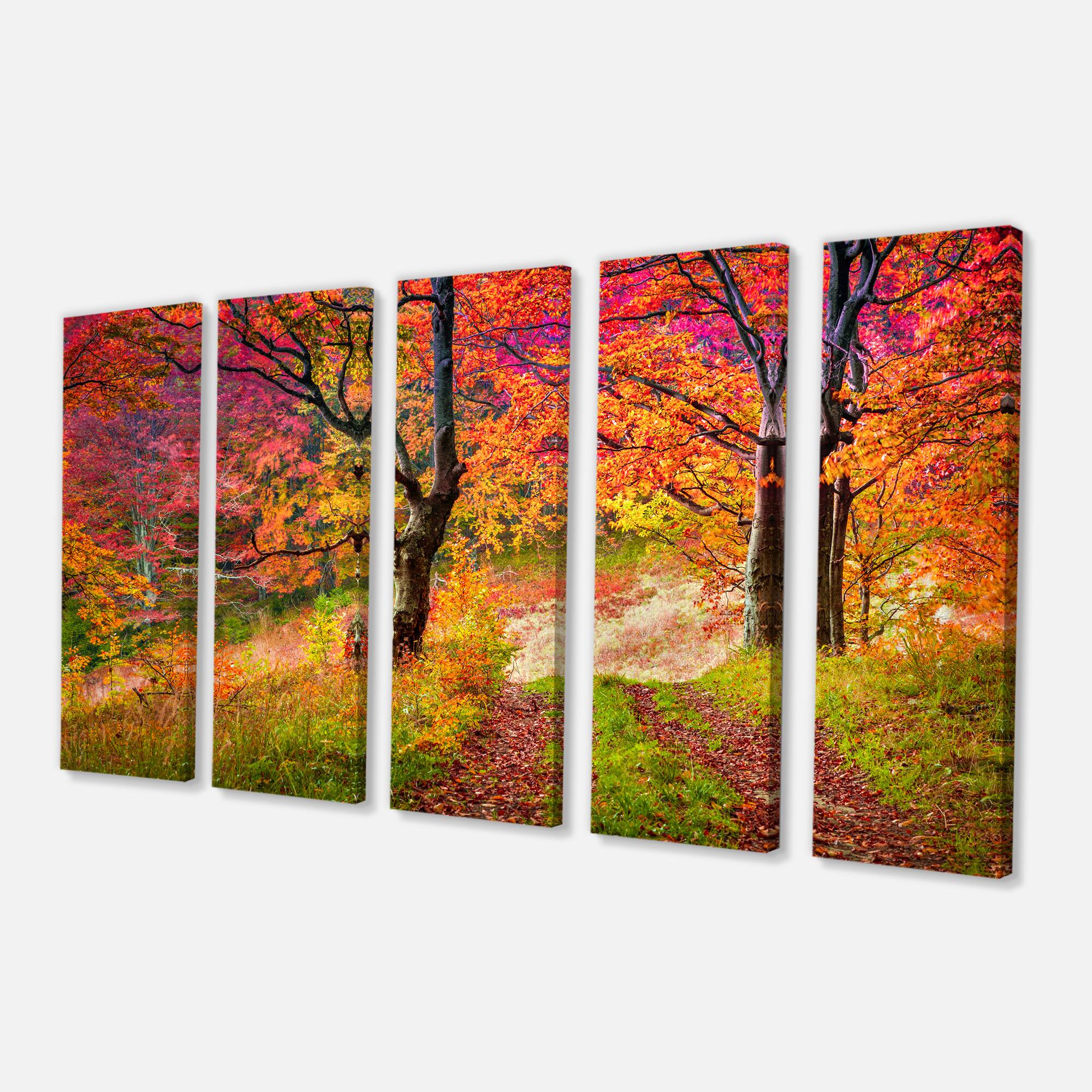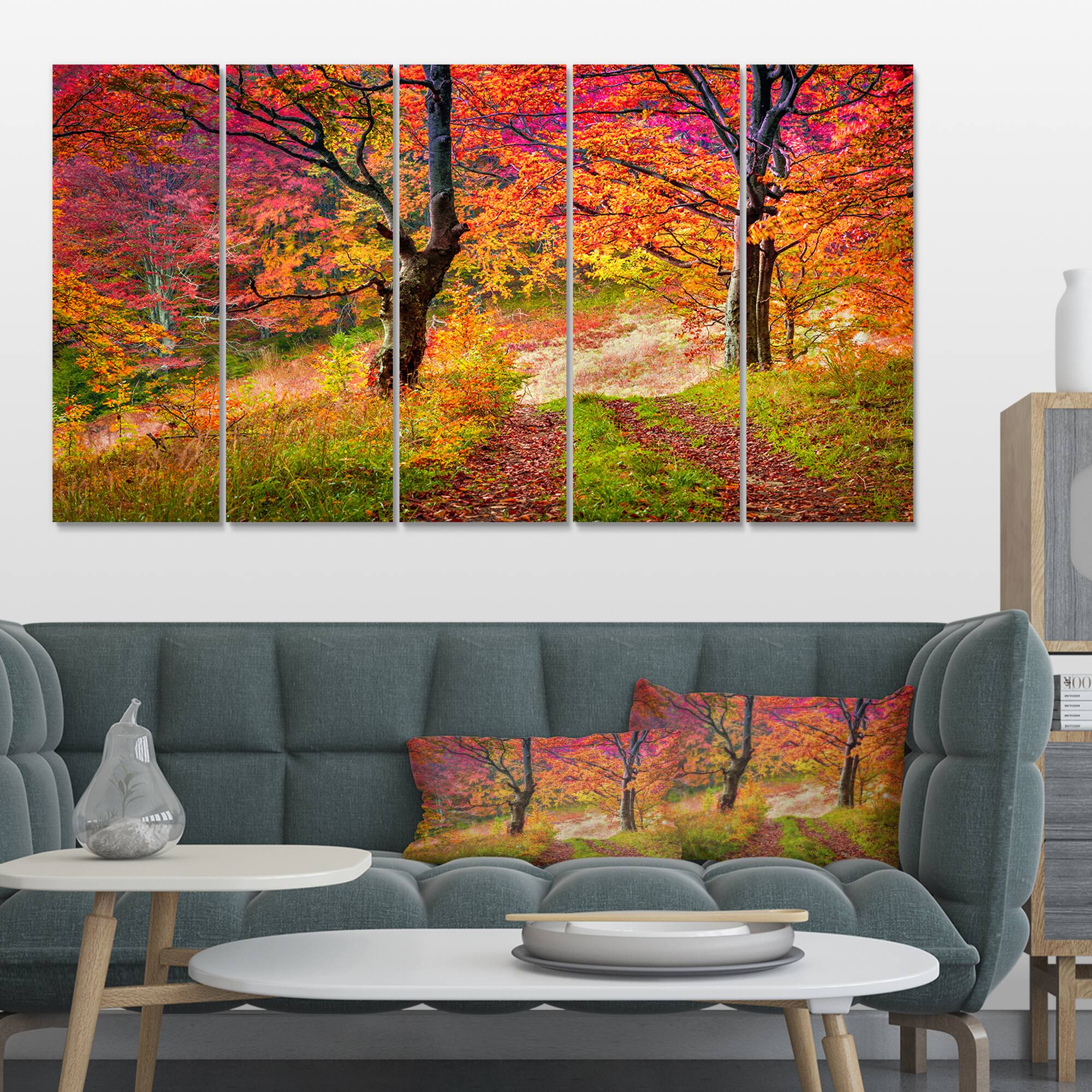 Designart - Bright Colorful Fall Trees in Forest - Large Landscape Canvas Art Print
