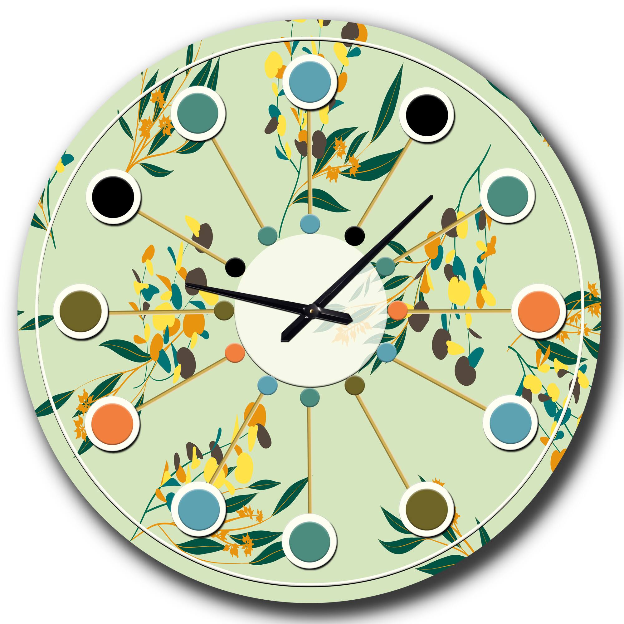 Designart Bright Eucalyptus Floral Pattern III Mid-Century Modern Wall Clock